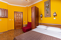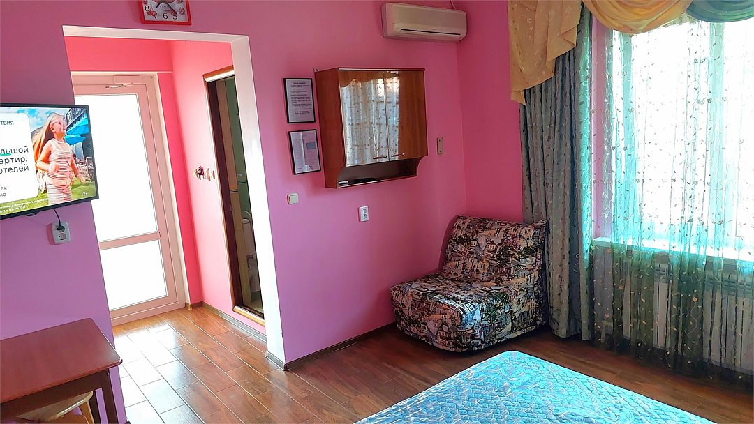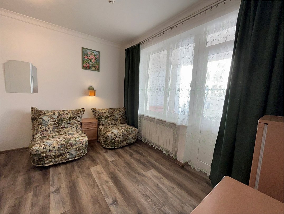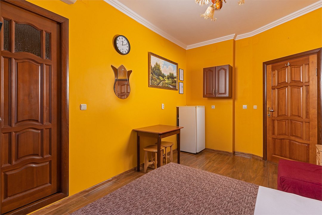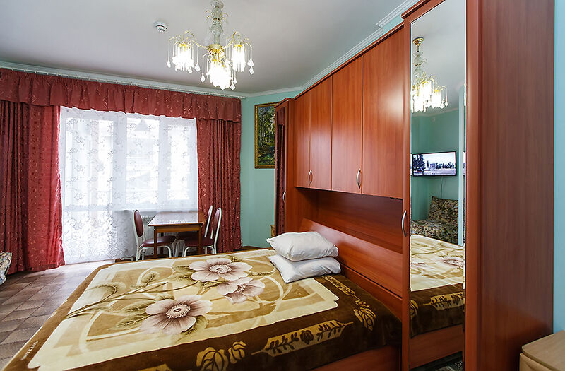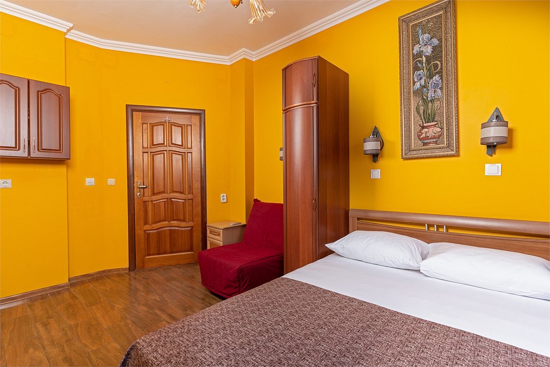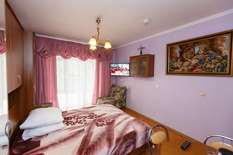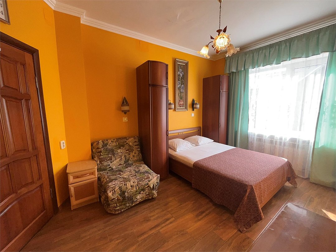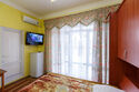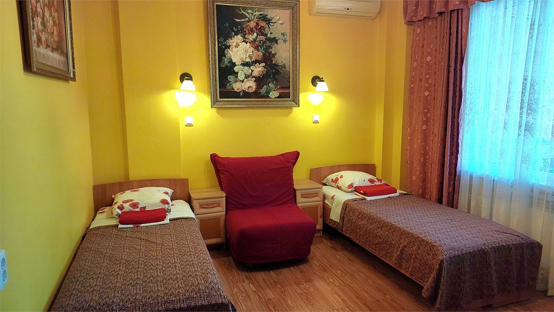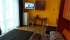 Двухместная комната, оформленная в современном стиле, Комфортабельные комнаты категории "Полулюкс" рассчитанные на размещение 3 человек, цена указана за номер. Обеспечены всем необходимым для полноценного отдыха. Комнаты оснащены: двуспальной кроватью на 3 го человека есть комфортабельное кресло кровать, LCD телевизором, сплит системой, сейфом для удобства хранения ценных вещей, холодильником, отдельным санузлом, посудой, феном и wi-fi. На каждом этаже есть гладильная доска с утюгом. В категории Полулюкс с балконом, имеется отдельный балкон и укомплектован улиной мебелью. Балкон имеет площадь 6 кв.м. Является идеальным местом для трапезы на свежем воздухе.Услуги и удобства