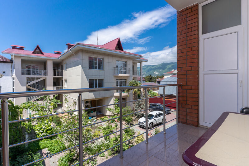 Wi-Fi, интернет, холодильник, фен, микроволновая печь, санузел, тапочки, балкон, двуспальная кровать, стулья, шкаф для одежды, вешалки, обеденный стол, зеркало, сейф, чайник, унитаз, обеденная зона, отопление, душ, вид на сад, вид на город, вид во двор, кухонная посуда, столовые приборы, стол, туалетные средства, туалет, сплит-система, цифровое тв, телевизор с плоским экраном, вид на горы, кресло-кровать, услуги прачечной (платно)В номере