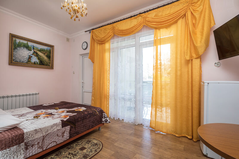 Двухместная комната, оформленная в современном стиле. Комфортабельные комнаты категории "Полулюкс" рассчитанные на размещение 2 человек. Обеспечены всем необходимым для полноценного отдыха. Комнаты оснащены: двуспальной кроватью, LCD телевизором, сплит системой, сейфом для удобства хранения ценных вещей, холодильником, отдельным санузлом, посудой, феном и wi-fi. В категории Полулюкс с балконом, имеется отдельный балкон, оснащенный мойкой, микроволновой печью (личной) или газовой плитой (на два номера) для самостоятельного приготовления пищи. Уличной мебелью. Балкон имеет площадь 10 кв.м. Является идеальным местом для трапезы на свежем воздухе.Услуги и удобства