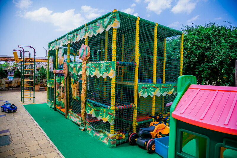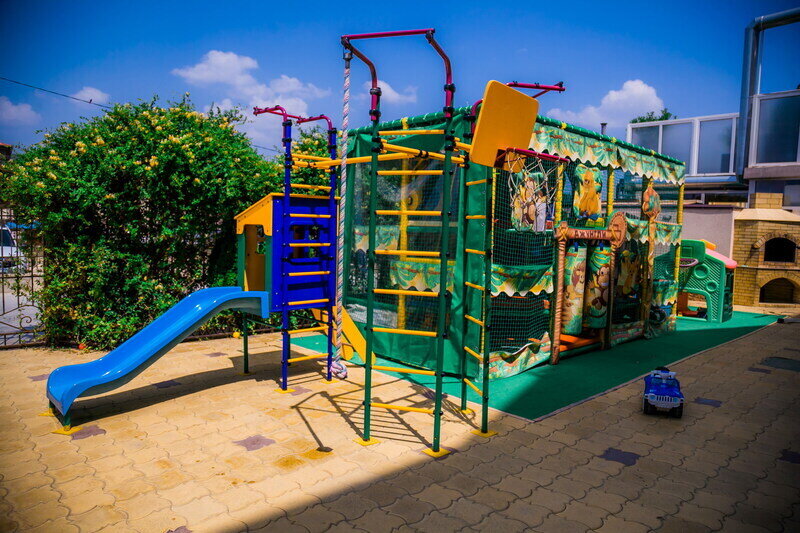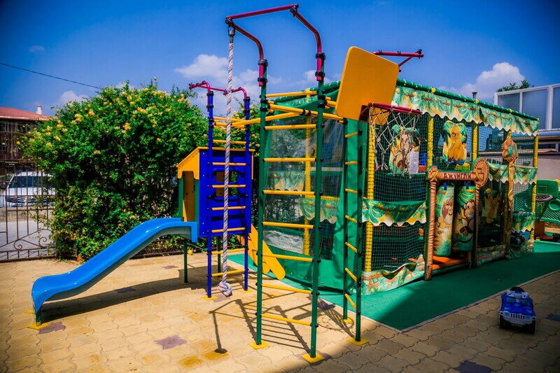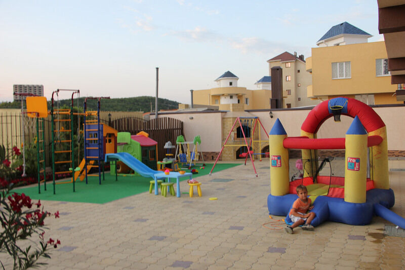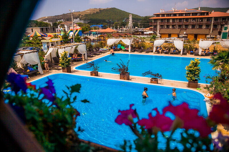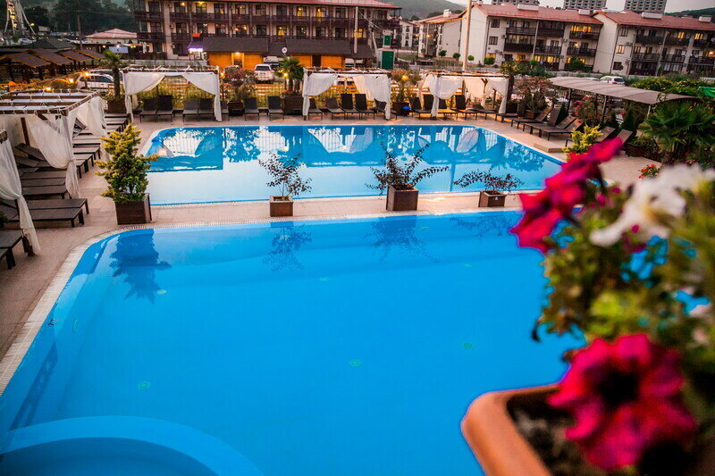 В здании отеля работает столовая, есть бар, открытый до последнего гостя. В распоряжении отдыхающих три уличных бассейна — два взрослых и один детский. Рядом по периметру установлены шезлонги и оборудована релакс-зона с беседками. Также на территории отеля есть сауна, библиотека, доступен беспроводной интернет. Автовладельцы могут воспользоваться охраняемой парковкой. Вечерний досуг гостям скрасят кинопоказы и развлекательные мероприятия. Для юных гостей организована игровая площадка, работает детская комната, где за малышами присматривают воспитатели, а в сезон детей развлекают веселые аниматоры. Родителям администрация отеля по запросу предоставляет детские кроватки, прогулочные коляски и ванночки.