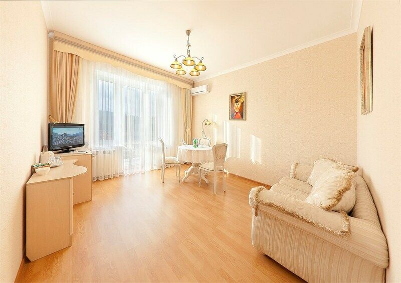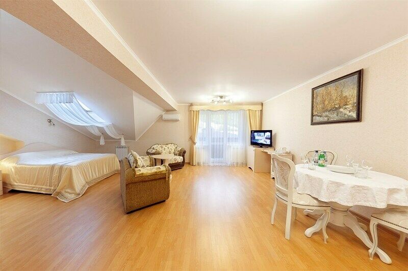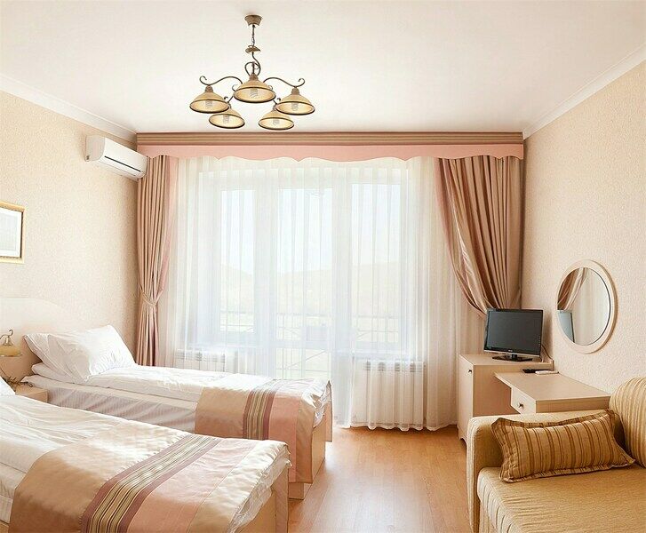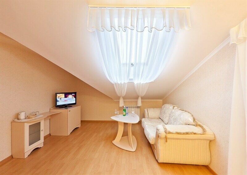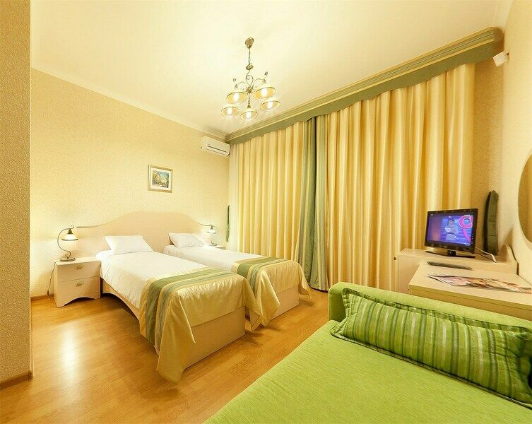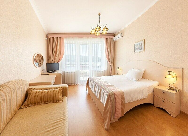 Сам отель представляет из себя четырехэтажное здание, которое расположено на закрытой территории площадью чуть больше полутора гектаров. Гостей ожидают 30 комфортабельных номеров со светлыми интерьерами. Каждый номер оснащен всем необходимым для комфортного проживания гостей: индивидуальный санузел с душем, установлена сплит-система, есть телевизор-ЖК и холодильник. В номерах улучшенной категории имеется гостиный уголок и дополнительная бытовая техника.