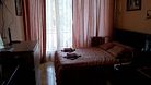Трехместный номер стандарт с открытым балконом и боковым видом на море.