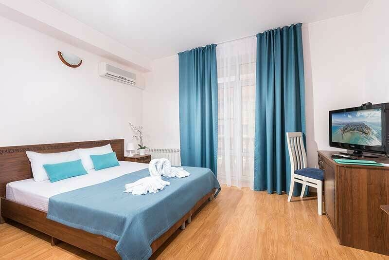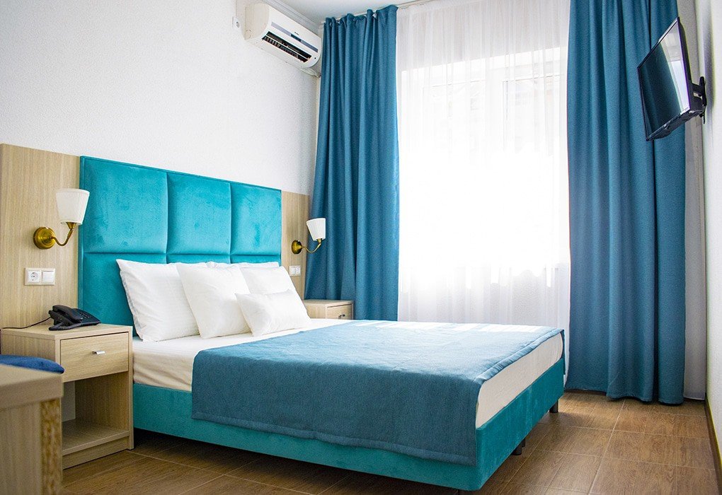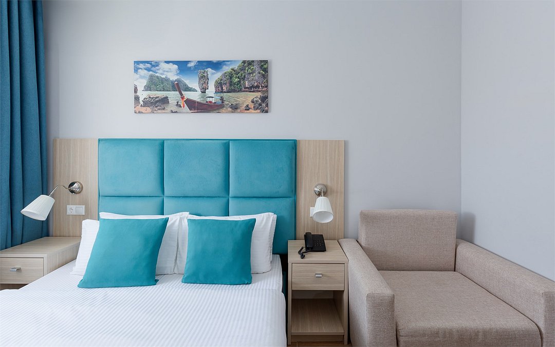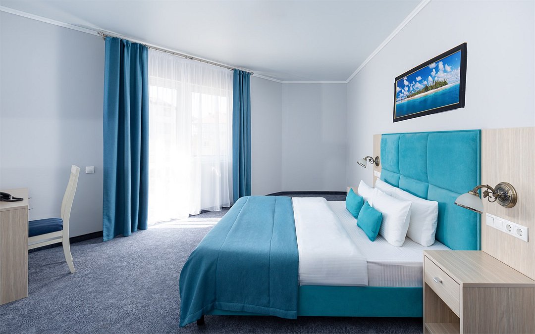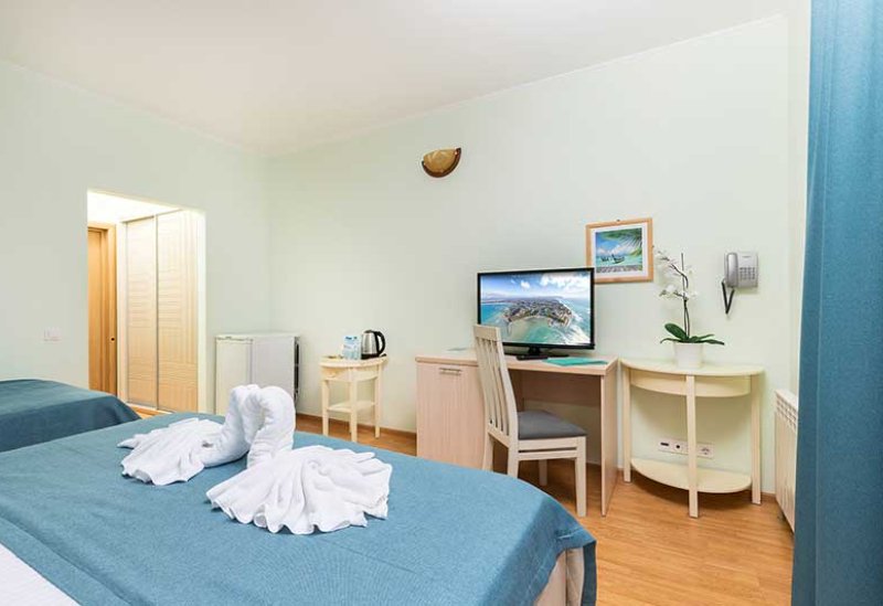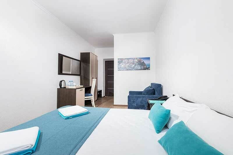 Стандарт двухместный с балконом — ваш уютный уголок для романтического отдыха! Номер с удобной двуспальной кроватью и собственным балконом станет идеальным выбором для пар. Здесь есть всё для комфортного проживания: стильная ванная комната с феном и косметическими наборами, эргономичная мебель и продуманная система хранения багажа. Преимущества номера: • Собственный балкон для утреннего кофе на свежем воздухе • Всё необходимое для беззаботного отдыха • Удобная планировка Начните день с чашечки кофе на собственном балконе и наслаждайтесь каждым моментом вашего отпуска!Услуги и удобства