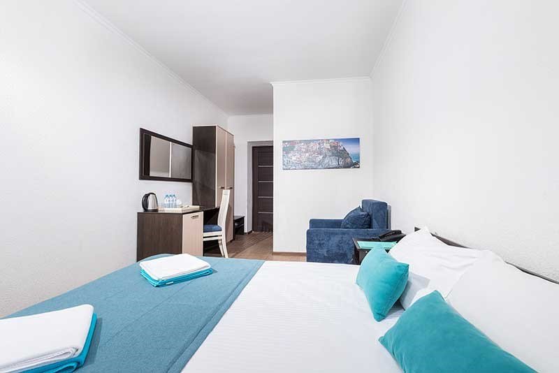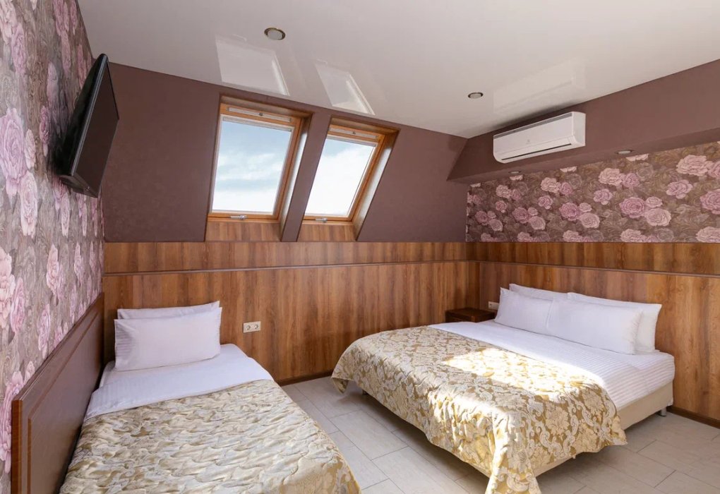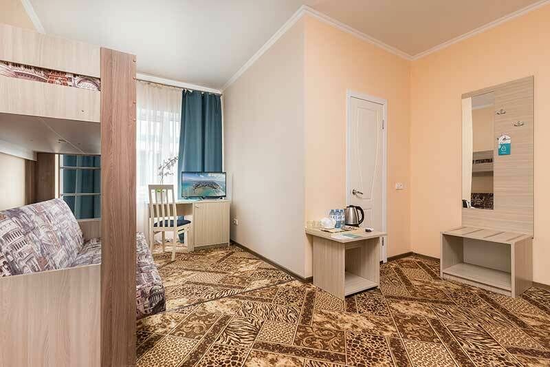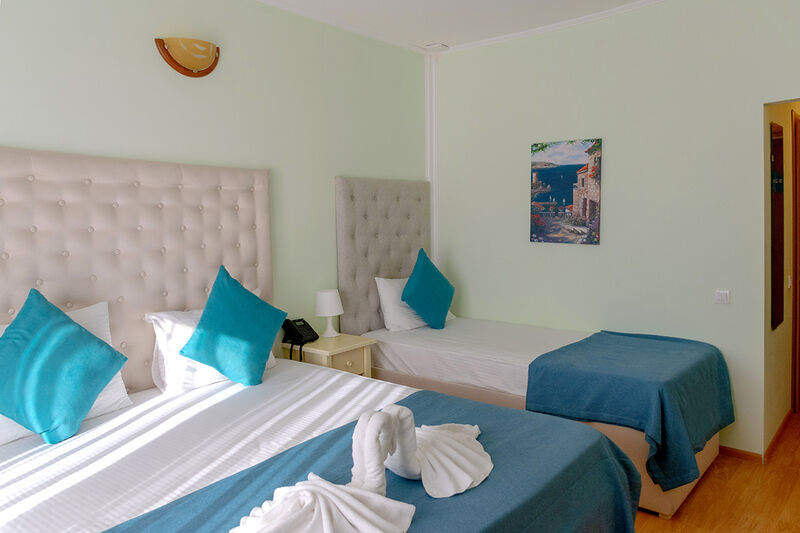 Стандарт трехместный — идеальное решение для семьи или компании друзей! Просторный номер для троих человек, собственной ванной комнатой и всем необходимым для комфортного отдыха. В вашем распоряжении — фен и косметические принадлежности. Мы продумали каждую деталь: • Эргономичная мебель для максимального комфорта • Удобная система хранения вещей • Достаточно места для багажа Идеальный выбор для: • Семьи с одним ребенком • Компании друзей • Экономного и комфортного отдыха Всё необходимое для прекрасного отдыха уже ждёт вас!Услуги и удобства