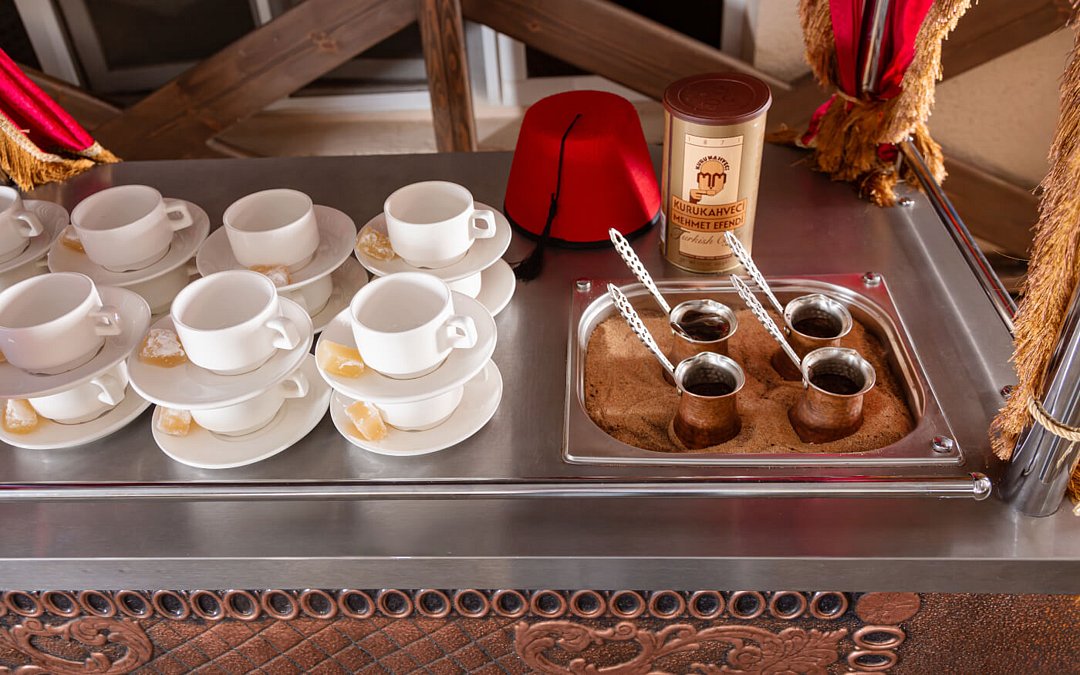 В кафе «Султан» можно завтракать, обедать, ужинать и в течении дня наслаждаться напитками в баре.