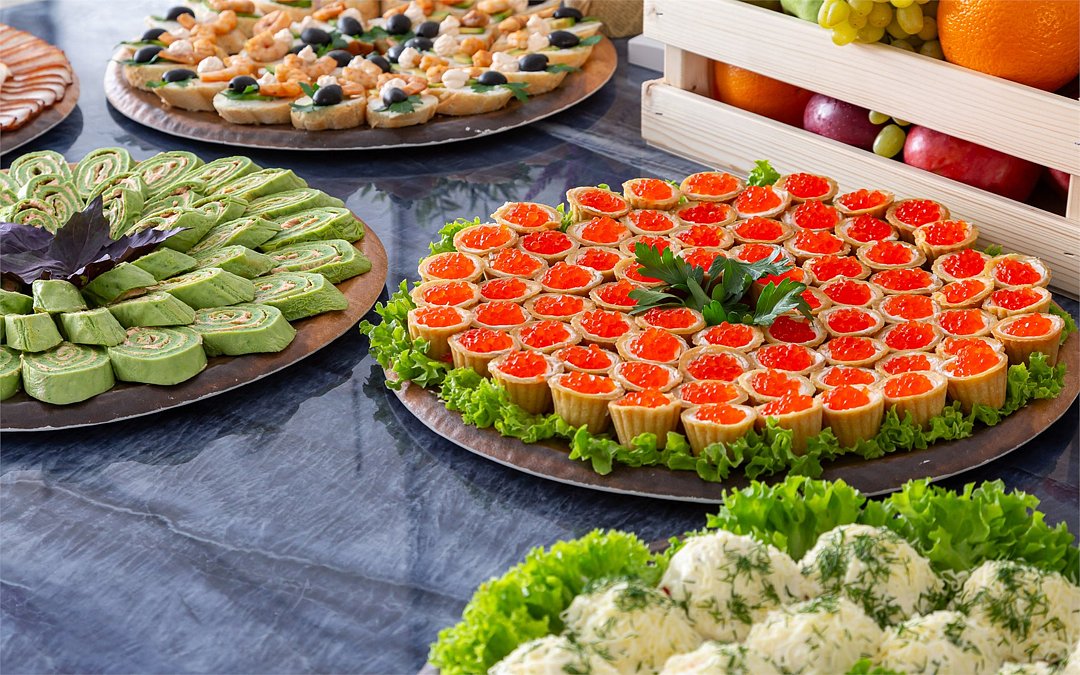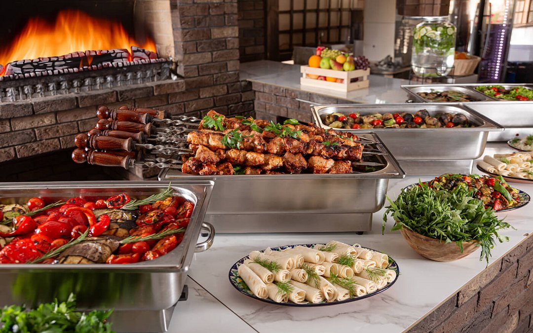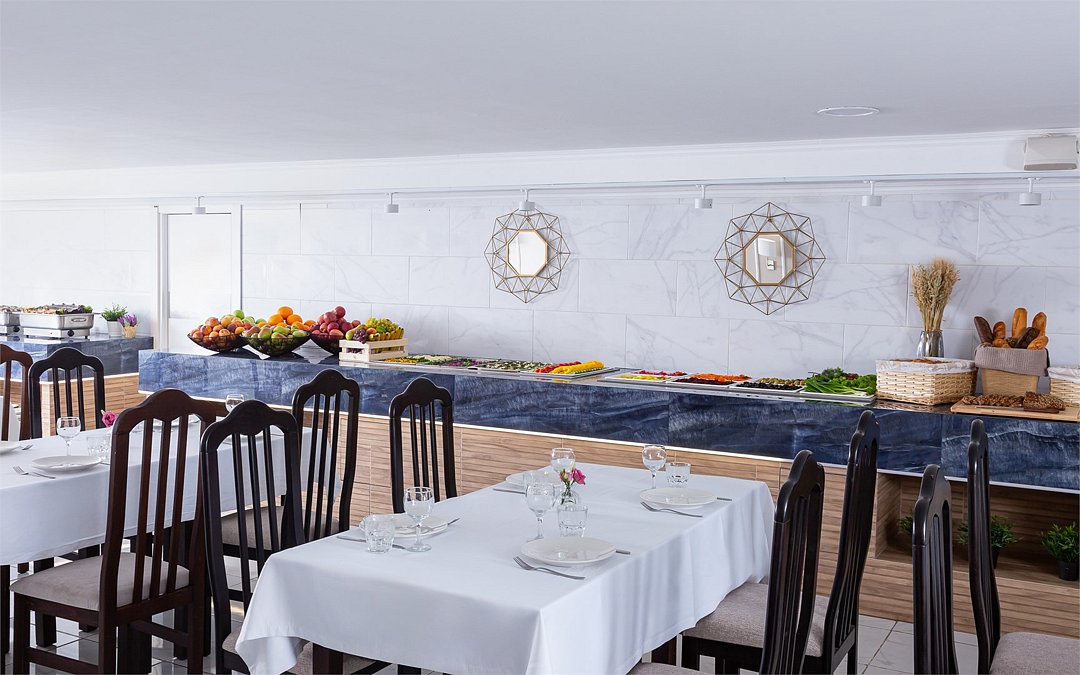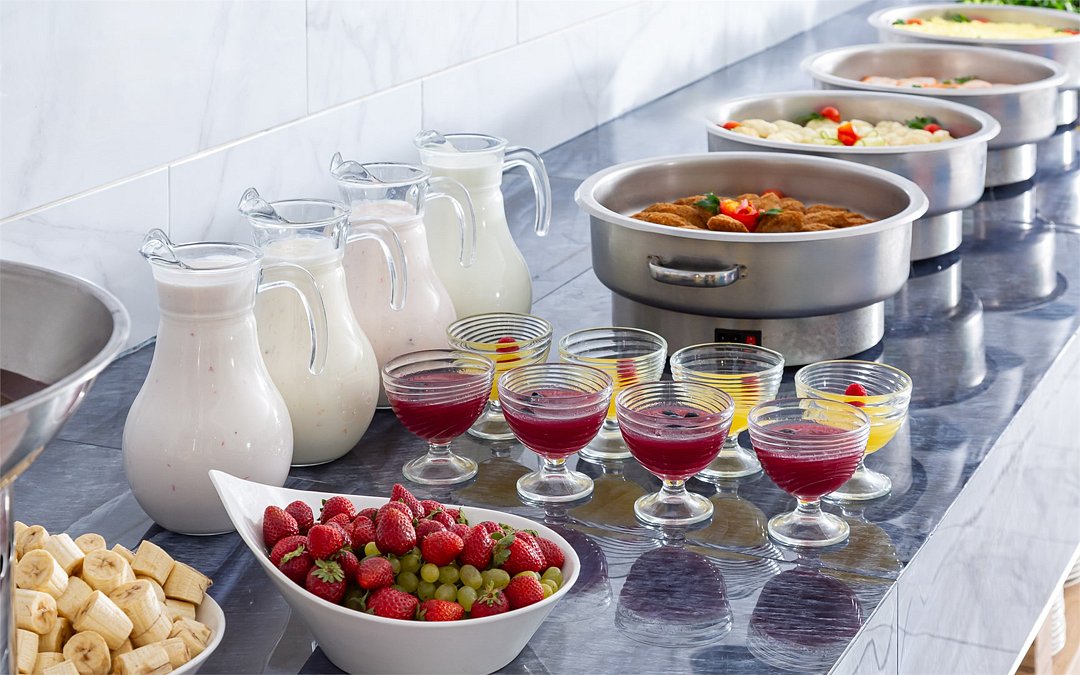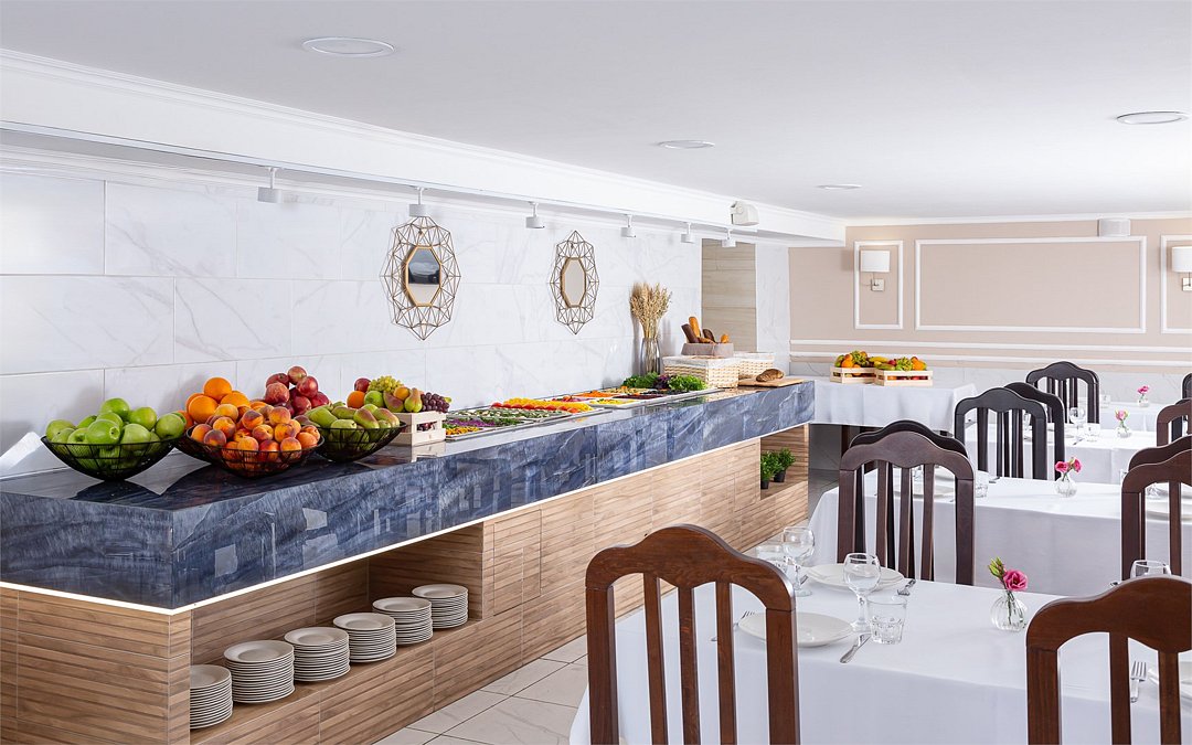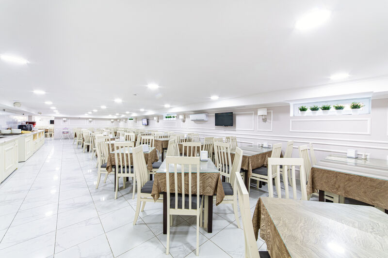 В приятно оформленном ресторане предложена система «шведского стола». Каждый гость может выбрать меню по собственному вкусу, регулируя объем и сочетание компонентов индивидуально.