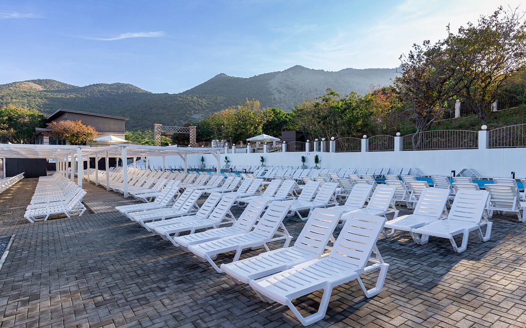 Галечный пляж отеля МоРеми — идеальное место для уединенного отдыха на Черном море. Наслаждайтесь чистой водой, удобными лежаками и теневыми навесами, а также двумя бассейнами с морской водой.