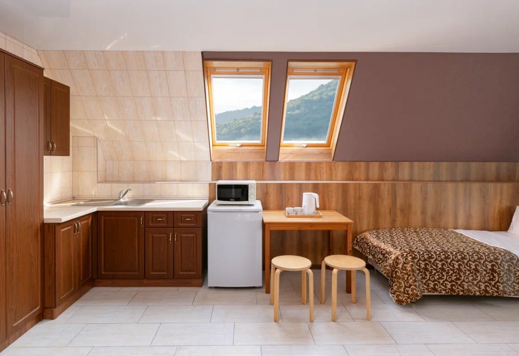 Стандарт трехместный (мансарда) — уютное пространство под самой крышей для семьи или компании друзей! Расположенный на мансардном этаже номер с тремя удобными спальными местами (двуспальная кровать и односпальная кровать) подарит особую атмосферу уединения. Здесь есть всё для комфорта: собственная ванная комната с феном и косметическими наборами, продуманная эргономичная мебель и достаточно места для багажа. Преимущества номера: • Уникальная мансардная планировка • Уютная атмосфера для отдыха после экскурсий • Всё необходимое под рукой Идеальный выбор для: • Семьи с одним ребенком • Компании друзей • Ценителей нестандартных решений Откройте особый мир уюта и комфорта под сводами мансарды!Услуги и удобства