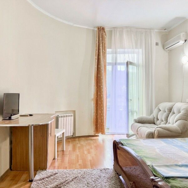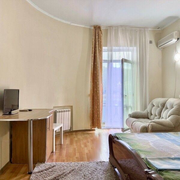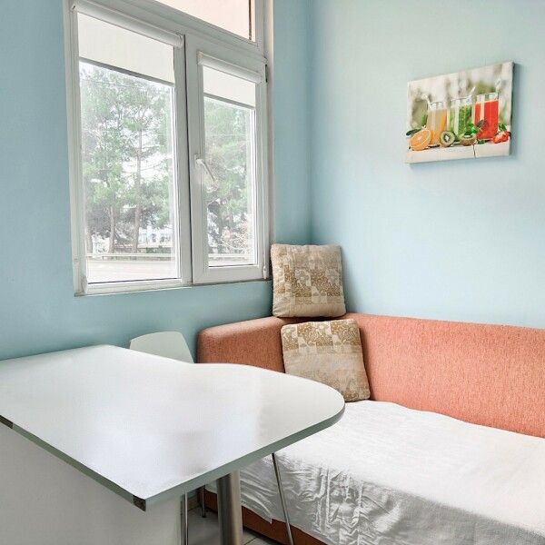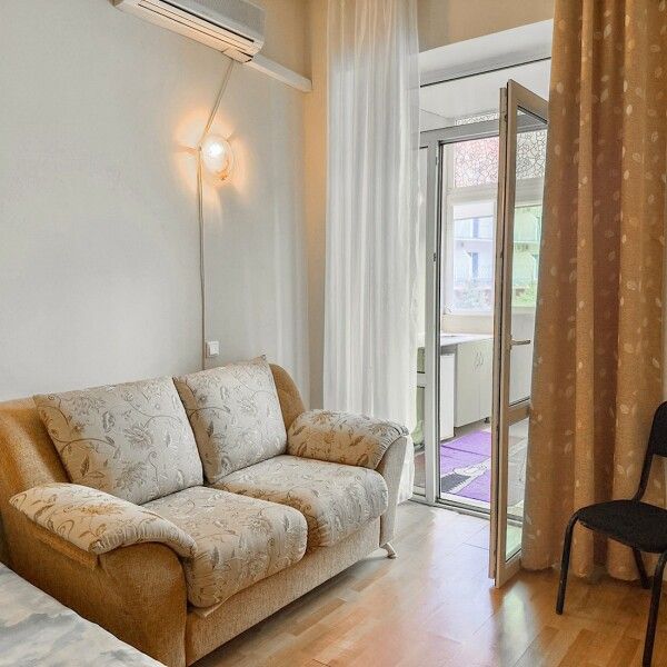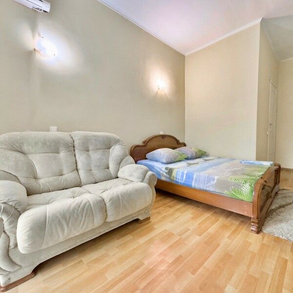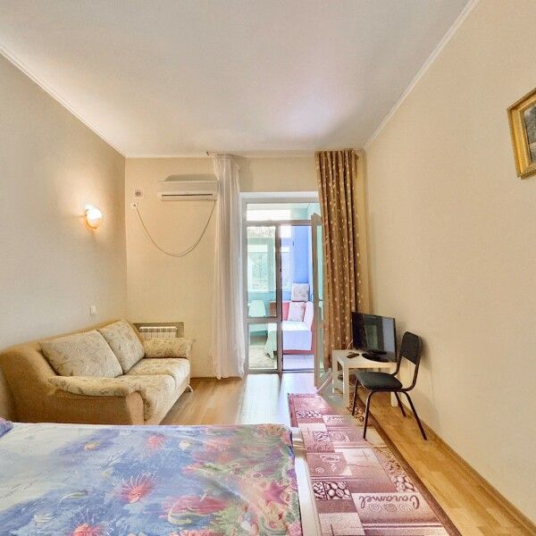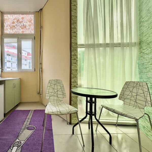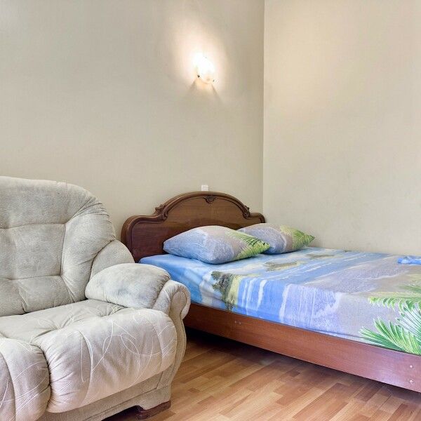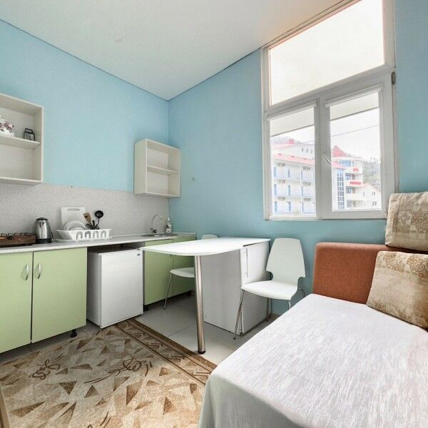 Трехместный номер с кухней площадью 23 кв.м с видом на улицу. Подходит для размещения 3 человек. Имеет спальню с приятным интерьером.