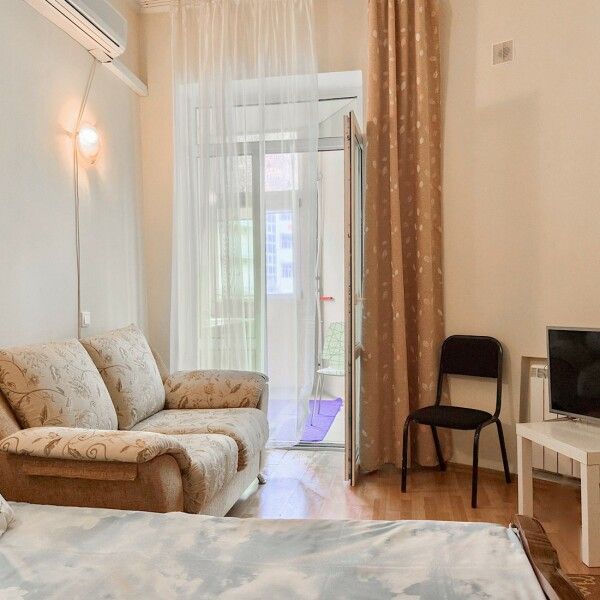 Трёхместный номер с балконом площадью 17 кв.м с видом на улицу. Подходит для размещения 4 человек. (3 основных места и 1 дополнительное) Имеет спальню с приятным интерьером.