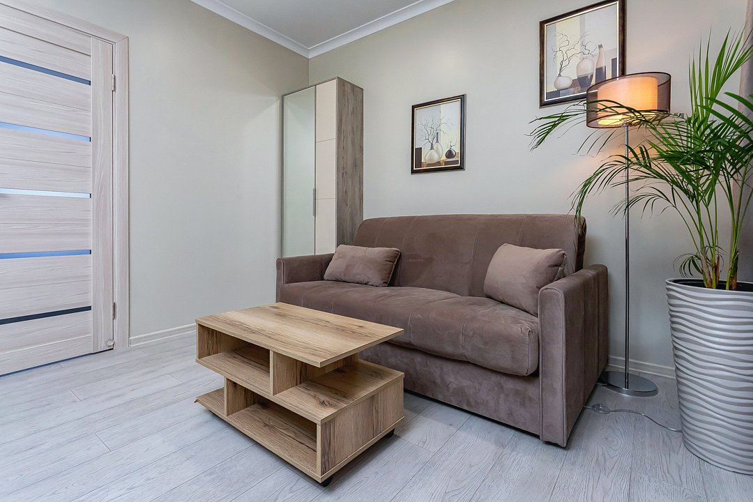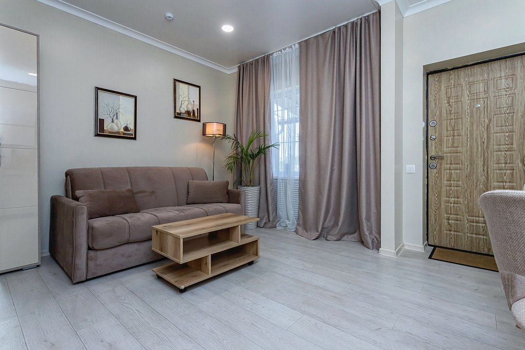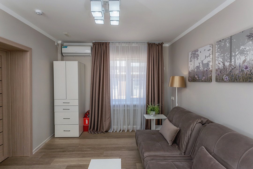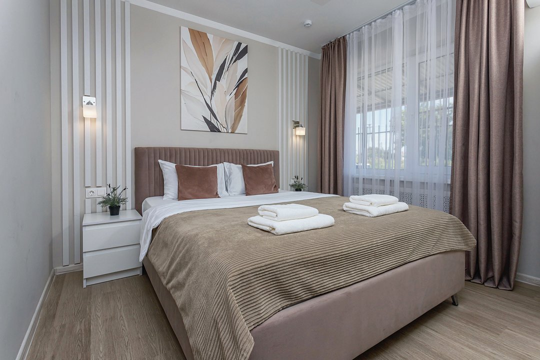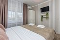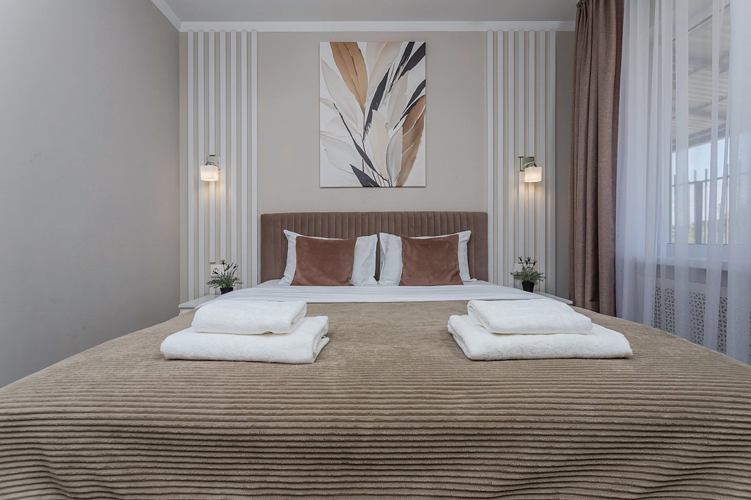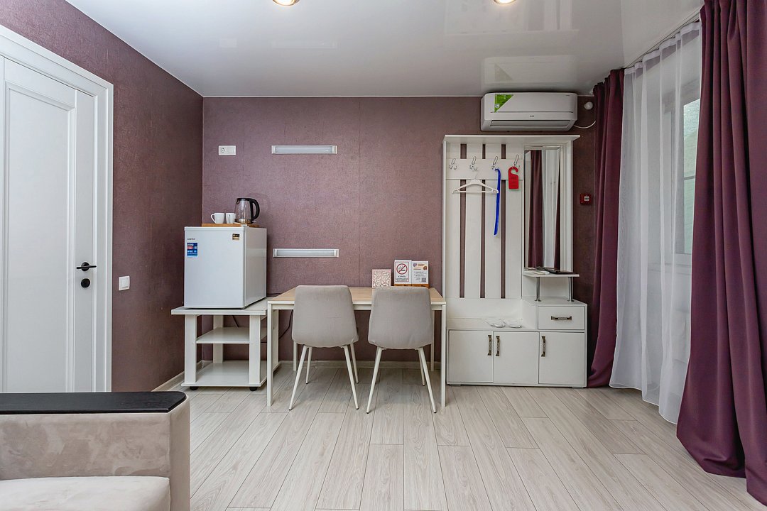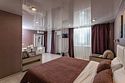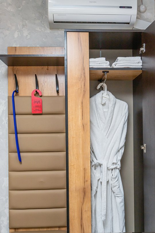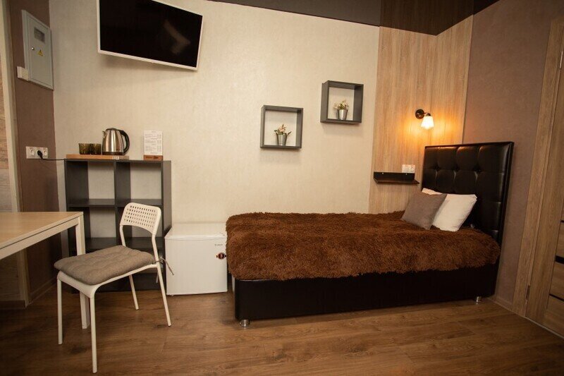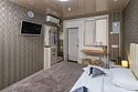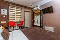 Номер отделан в комфортных тонах, выполнен в благородной, коричневой гамме, укомплектован необходимой техникой, с ежедневной влажной уборкой.
