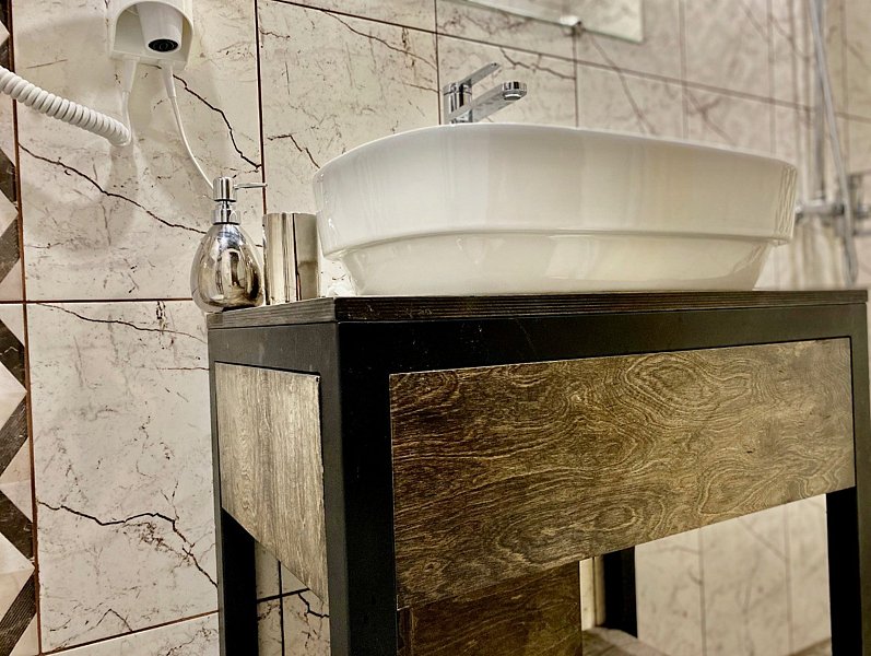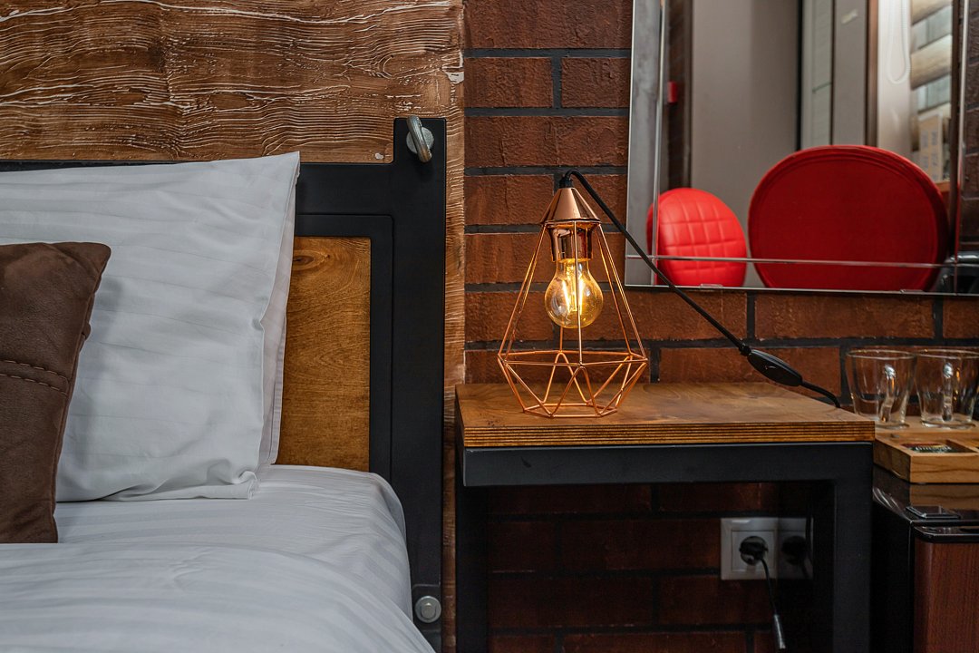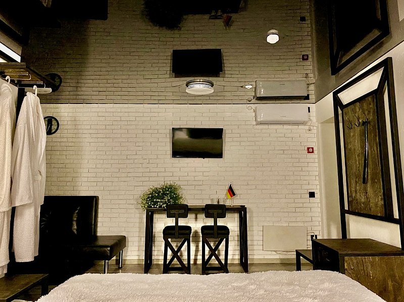Современный номер лофт в немецком продуманном стиле. В отделке мебели использована только ручная работа с авторским дизайном из железа и дерева.