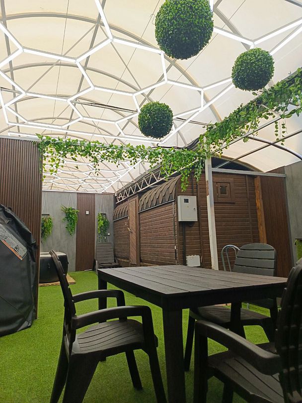 На территории отеля есть все необходимое для комфортного пребывания гостей. Есть мобильный офис, где можно поработать за компьютером. Для отдыха и проведения вечеринок есть беседка с зоной барбекю.