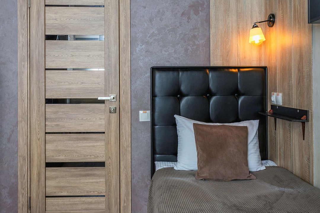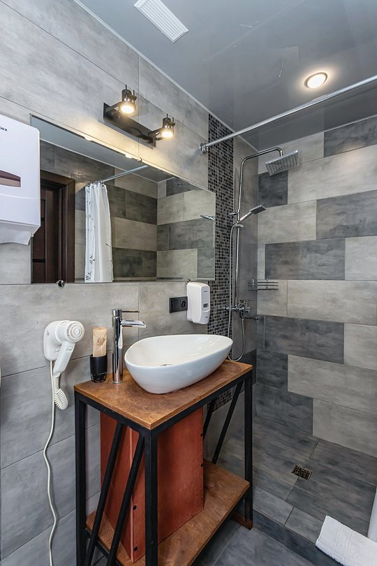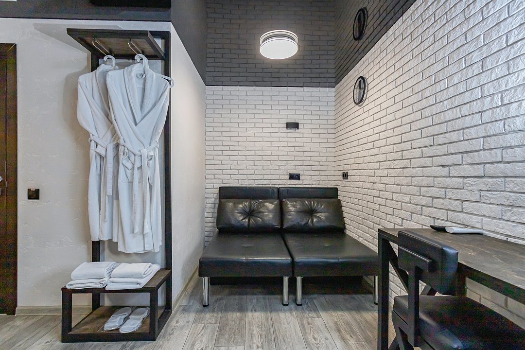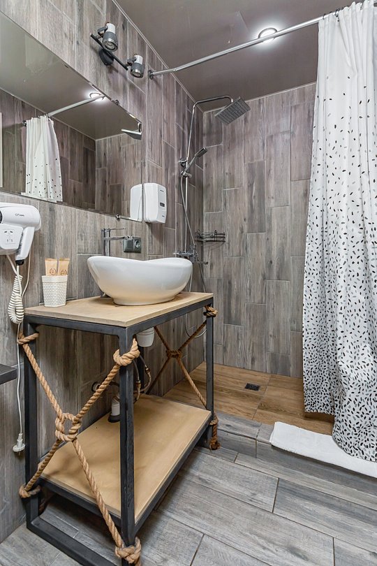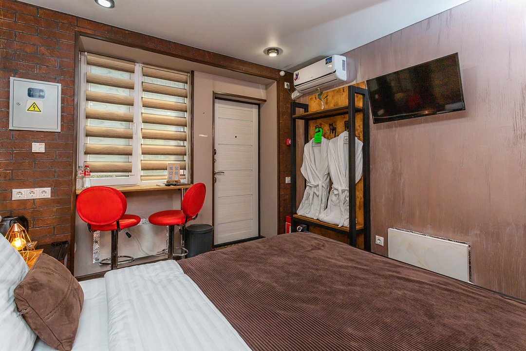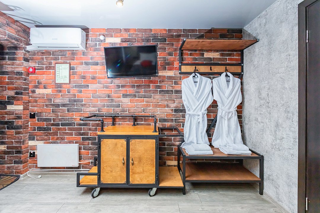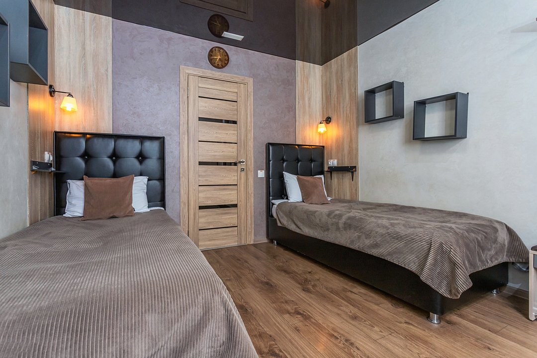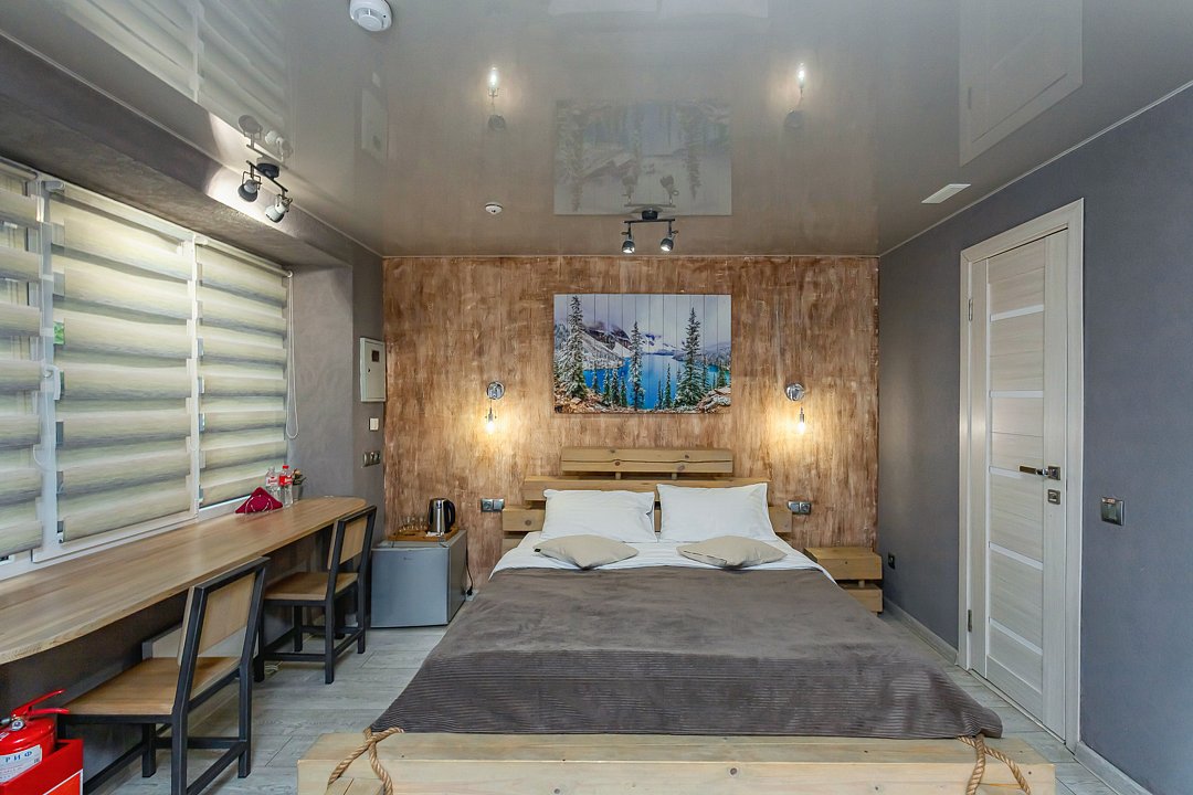Практичный комфортный номер с максимальным наполнением! Отличительной особенностью является дизайн номера, повышенная степень комфортности и особый, брутальный стиль в интерьере.