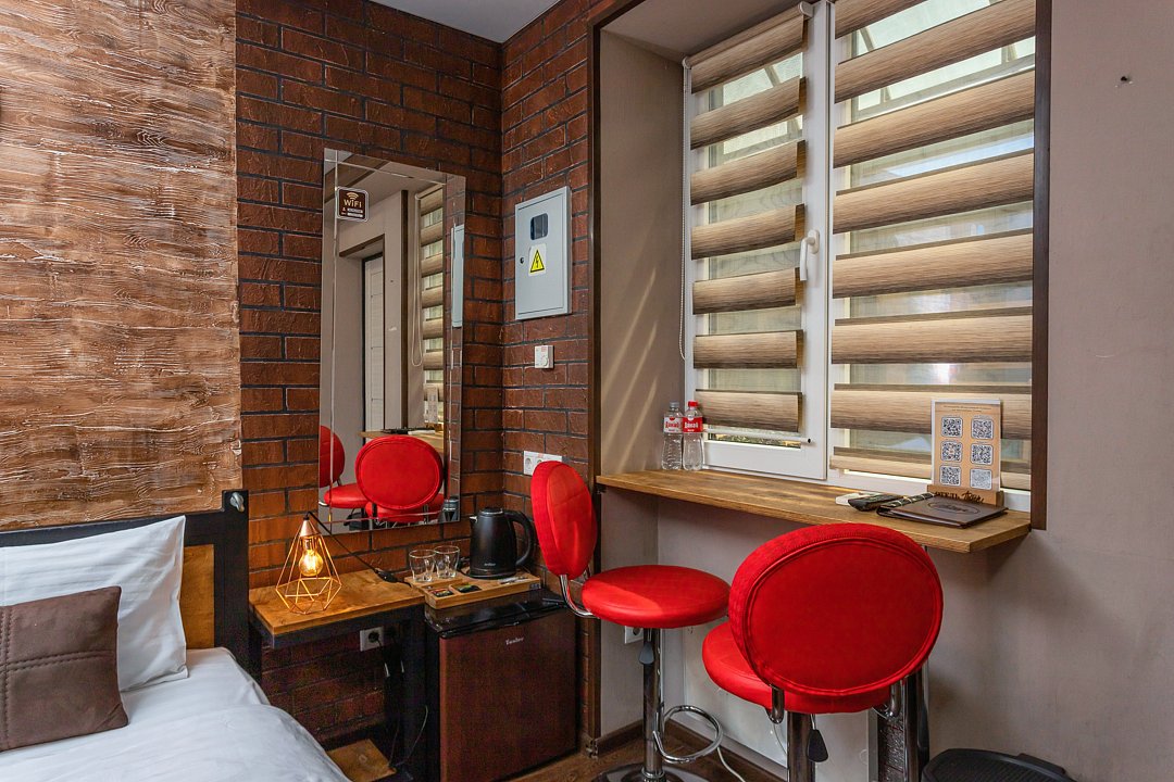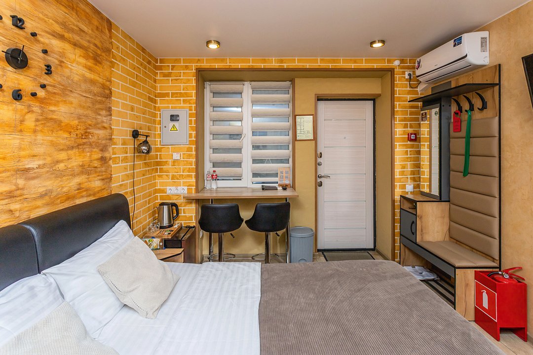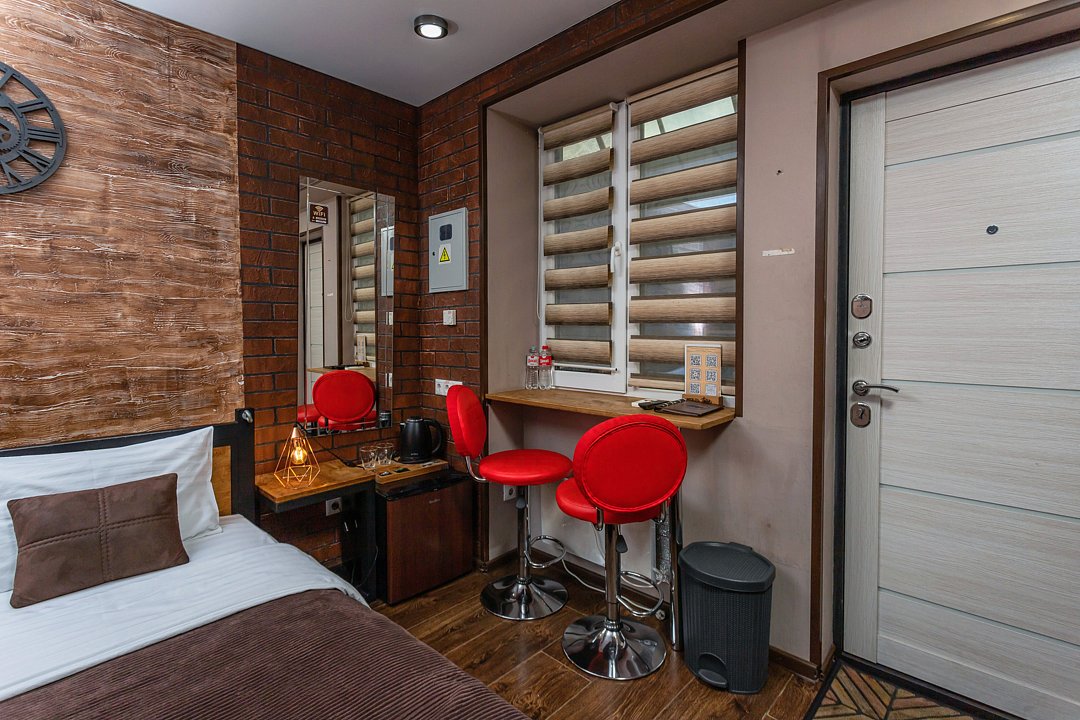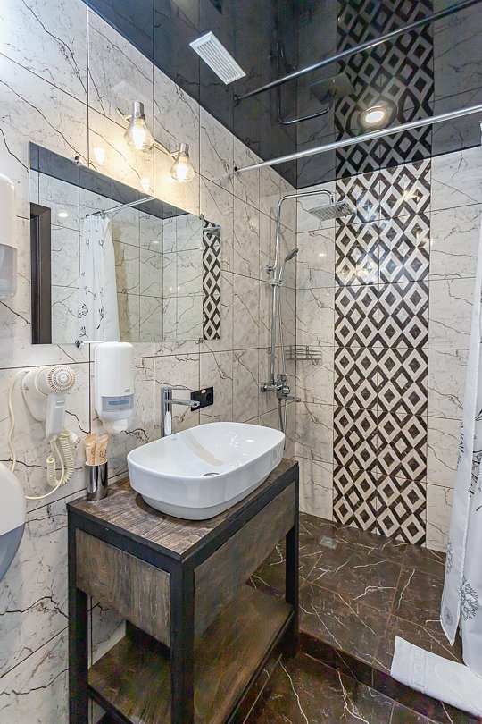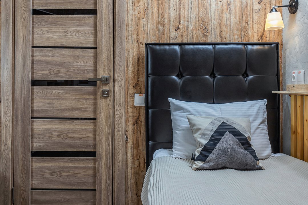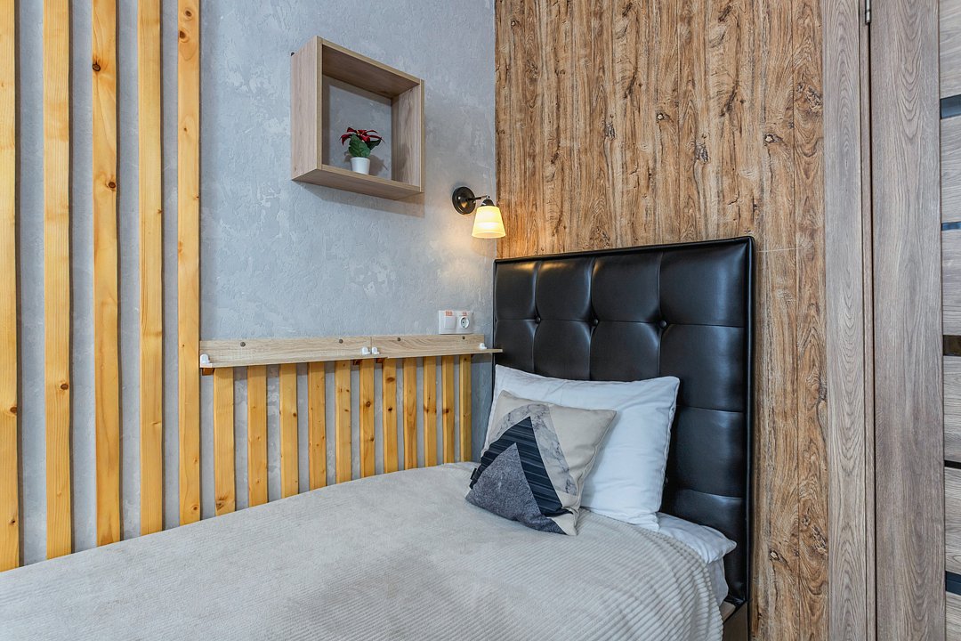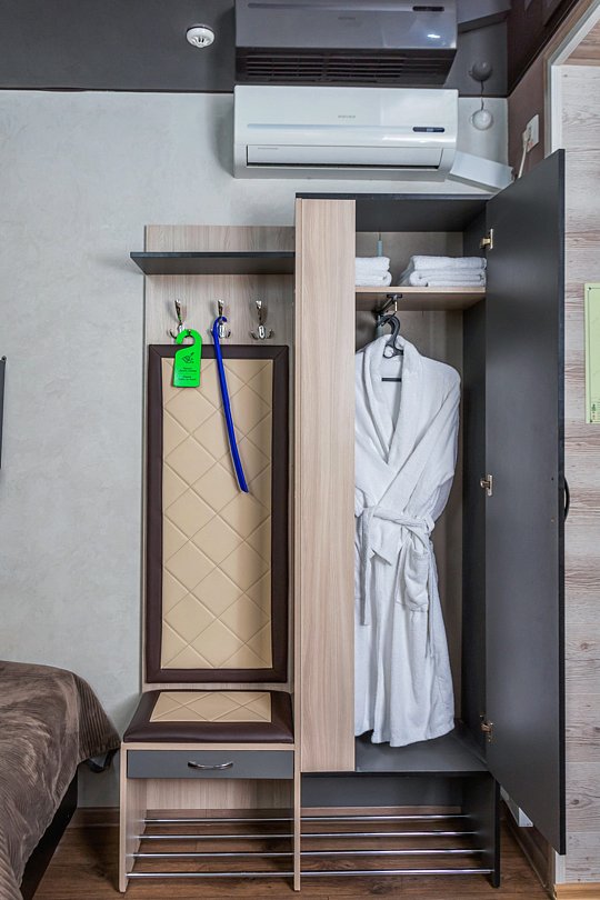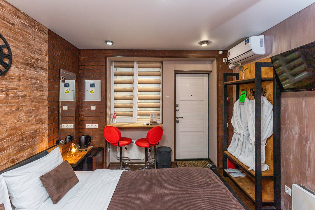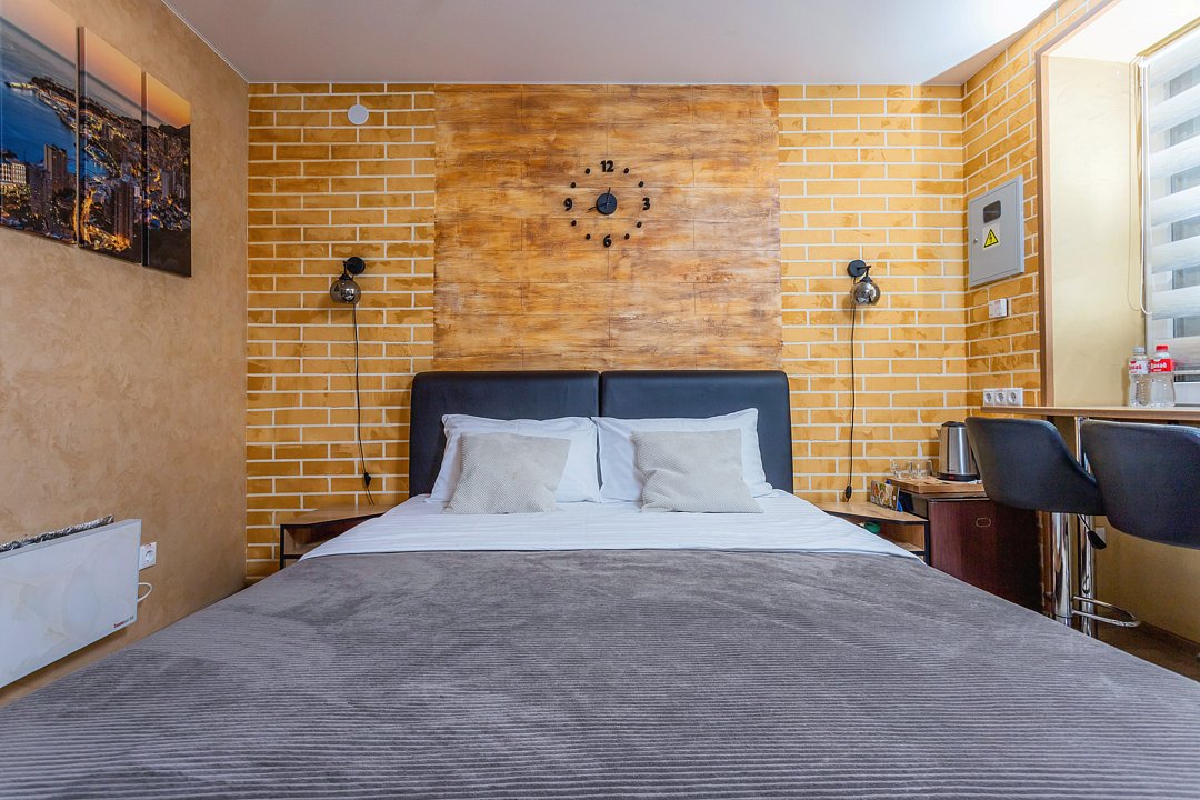 Практичный комфортный номер с максимальным наполнением! Отличительной особенностью является дизайн номера, повышенная степень комфортности и особый, брутальный стиль в интерьере.