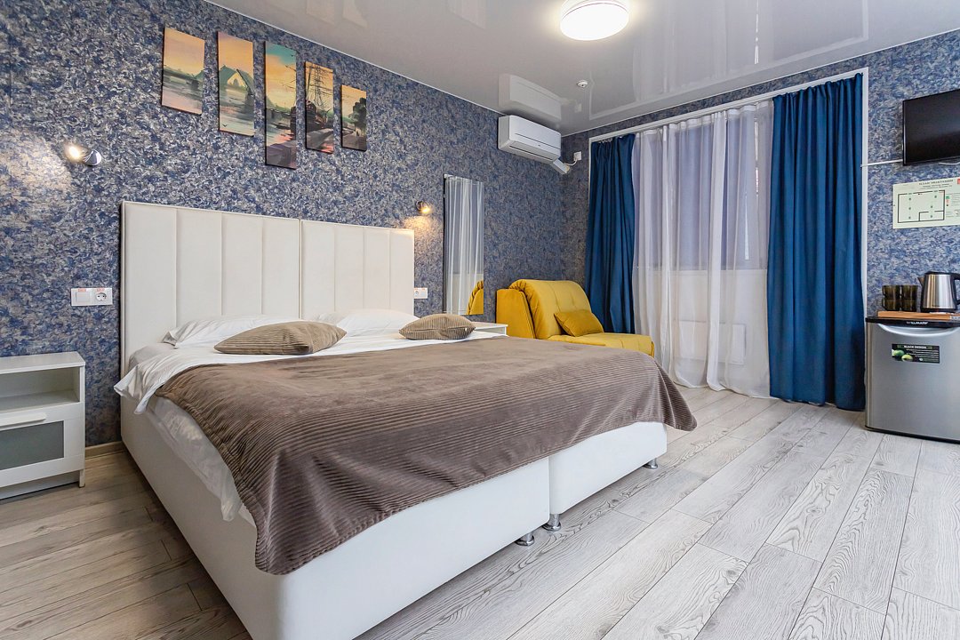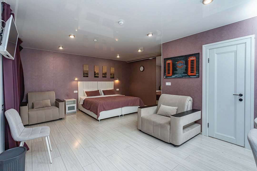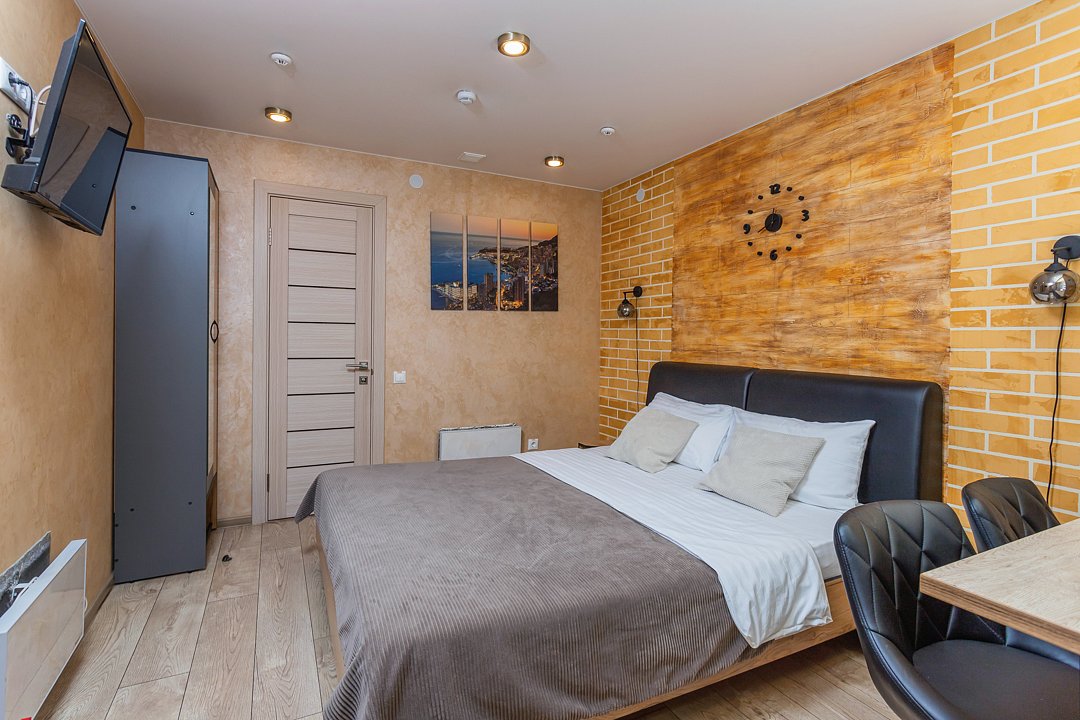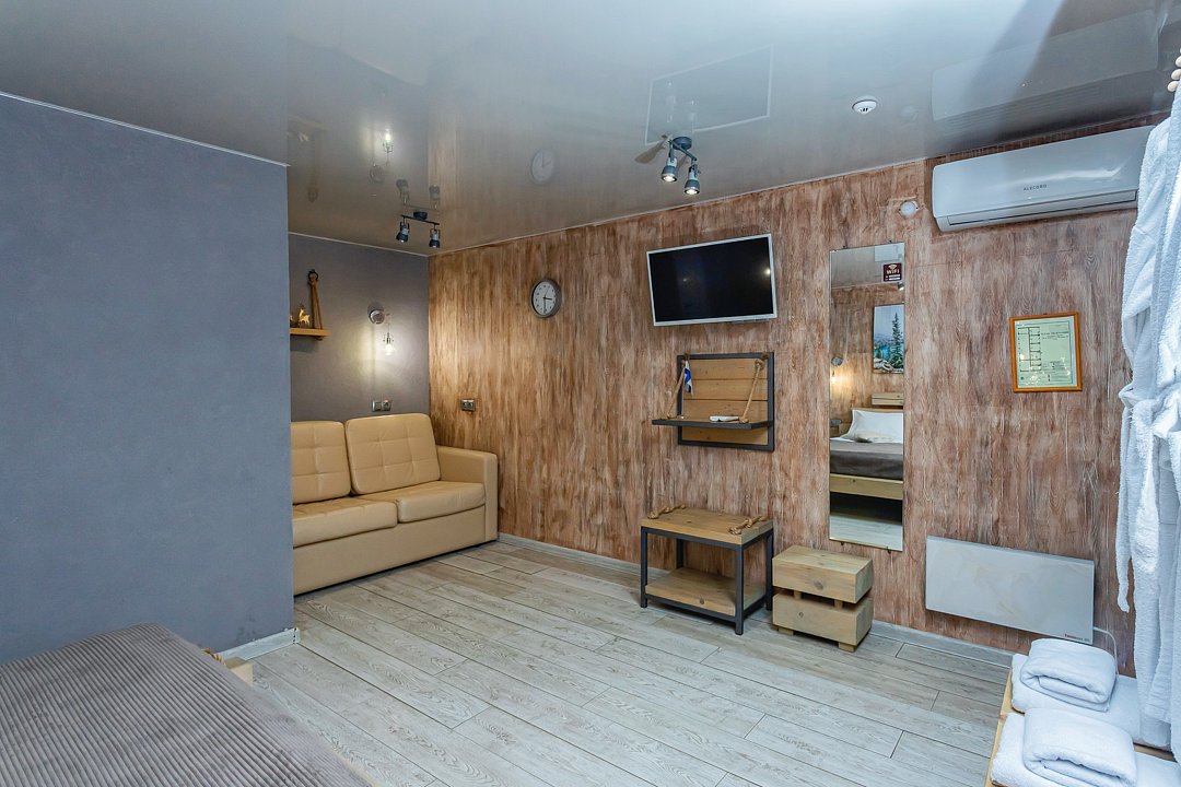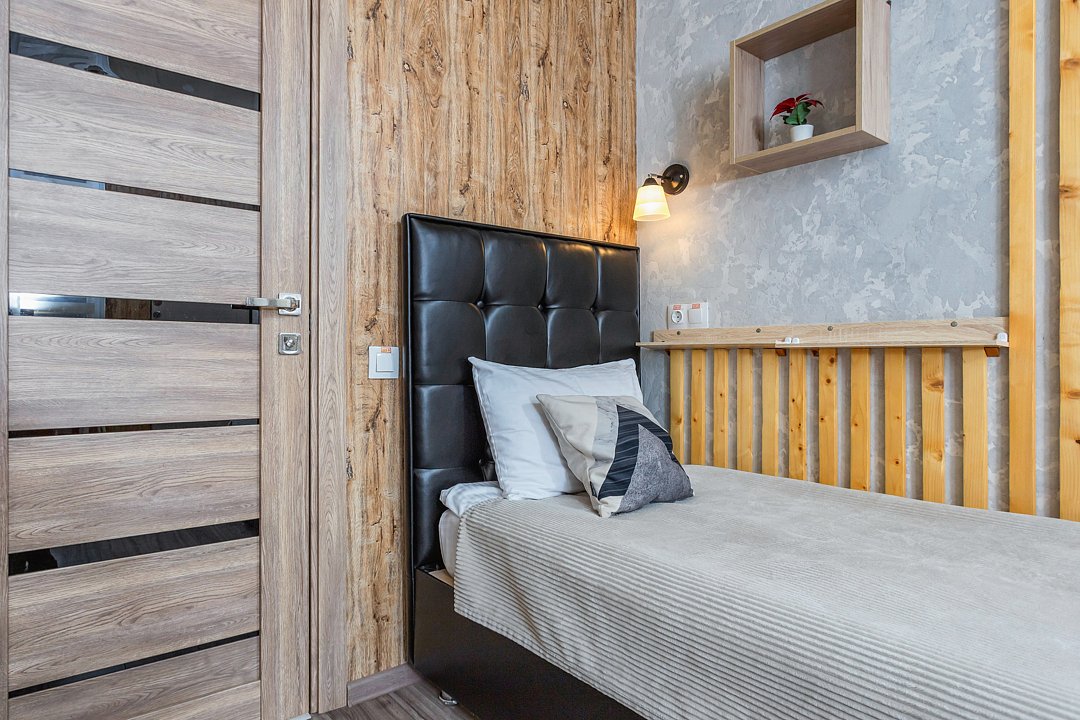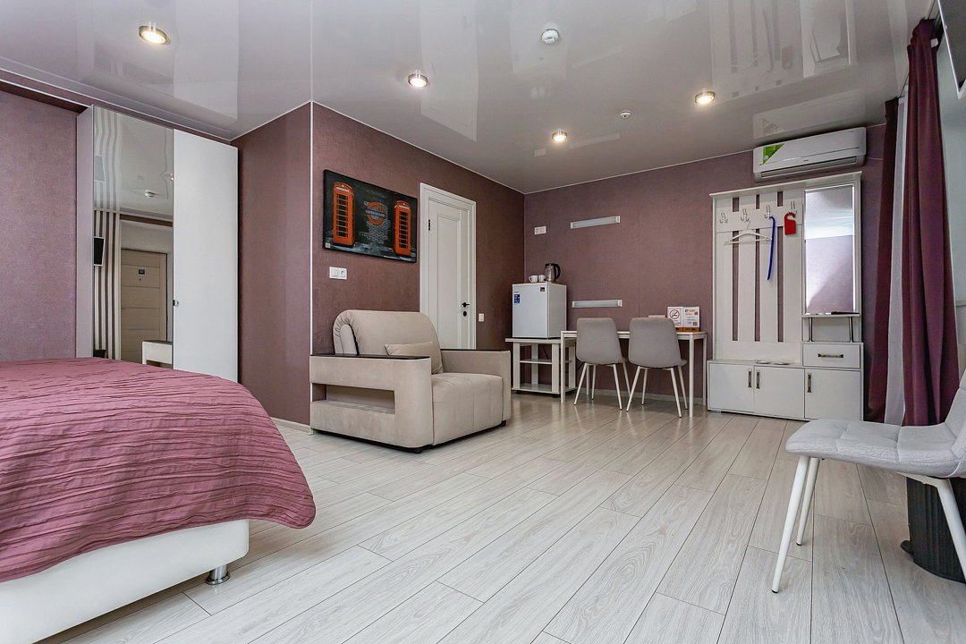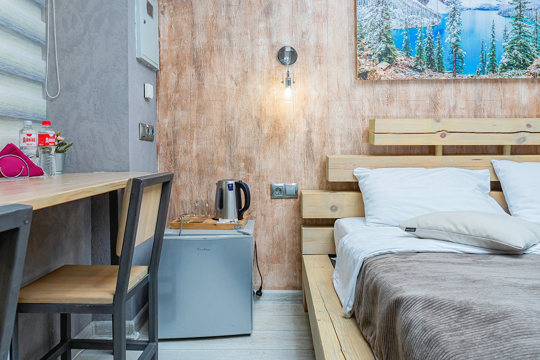Практичный комфортный номер с максимальным наполнением! Отличительной особенностью является дизайн номера, повышенная степень комфортности и особый, брутальный стиль в интерьере.