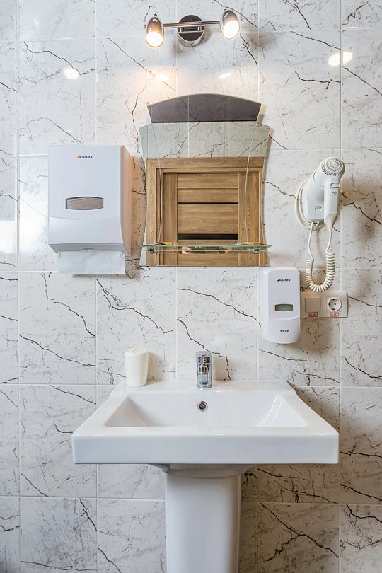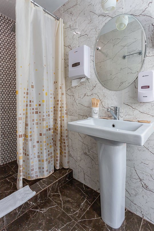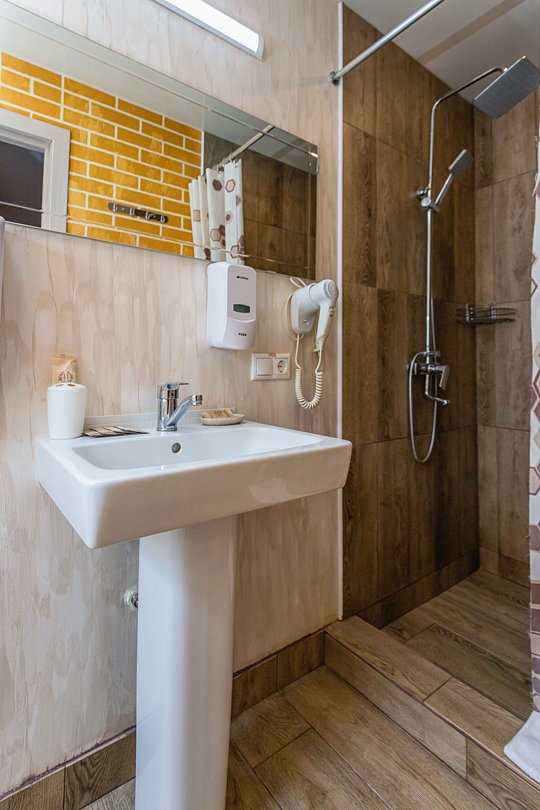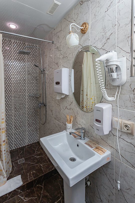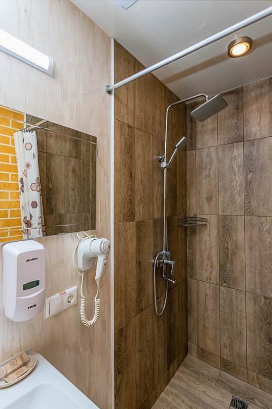НедостаткиКрайне плохая звукоизоляция. Слышали как в другом номере говорят по телефону или смотрят телевизор. Матрас был с провалами, спать неудобно. Нет возможности оставить вещи на хранение до вечера после выезда. Интернет оставляет желать лучшего. Душ работает крайне неудовлетворительно, вода течет одновременно из смесителя и лейки, и это влияет на напор воды.