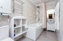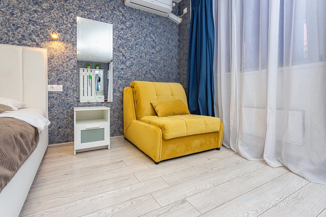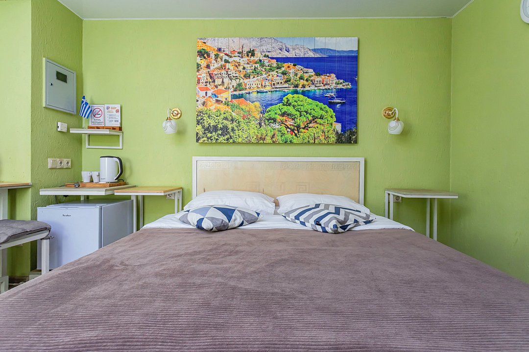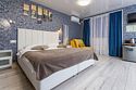 Улучшенный семейный номер на 4-х человек предлагает своим гостям спокойную серо-бирюзовую, расслабляющую атмосферу.