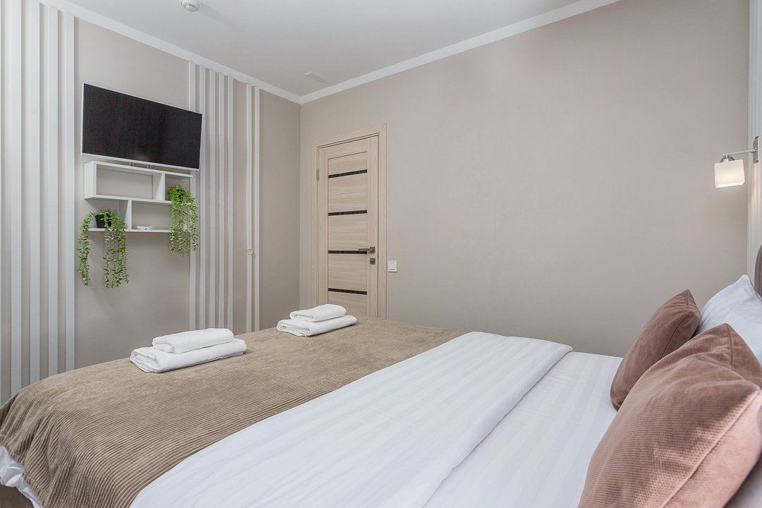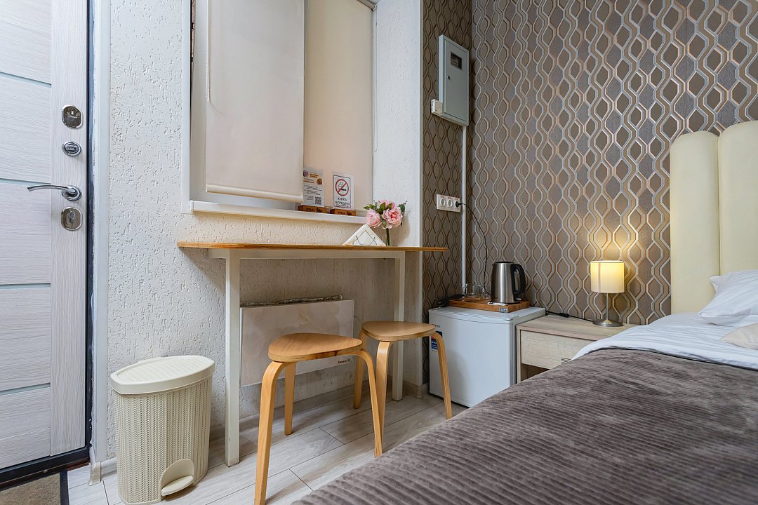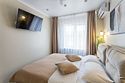 Практичный комфортный номер с максимальным наполнением! Отличительной особенностью номера на 2-х человек в отеле «Питер» является прежде всего повышенная степень комфортности и современный дизайн. Интерьер комнаты выдержан в теплых, песочных тонах