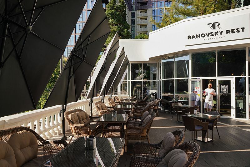 Ресторан «Ranovsky Rest» предлагает разнообразное меню, приготовленное опытными поварами из свежих ингредиентов. В уютной атмосфере зала и террасы, оформленной с использованием зеленых насаждений и мягкой деревянной мебели, особое место занимает старинное дерево, хранящее историю этой виллы.