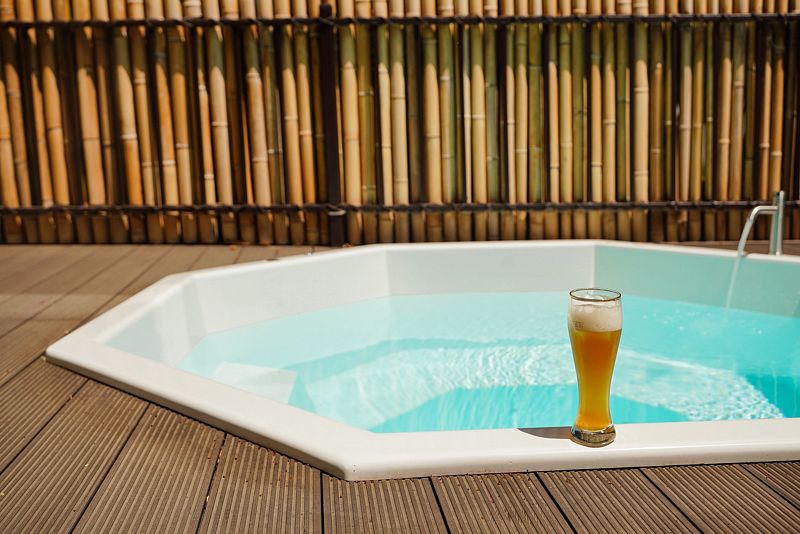 Открытый бассейн с подогревом и джакузи