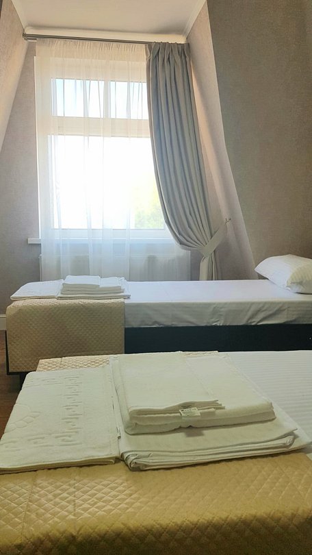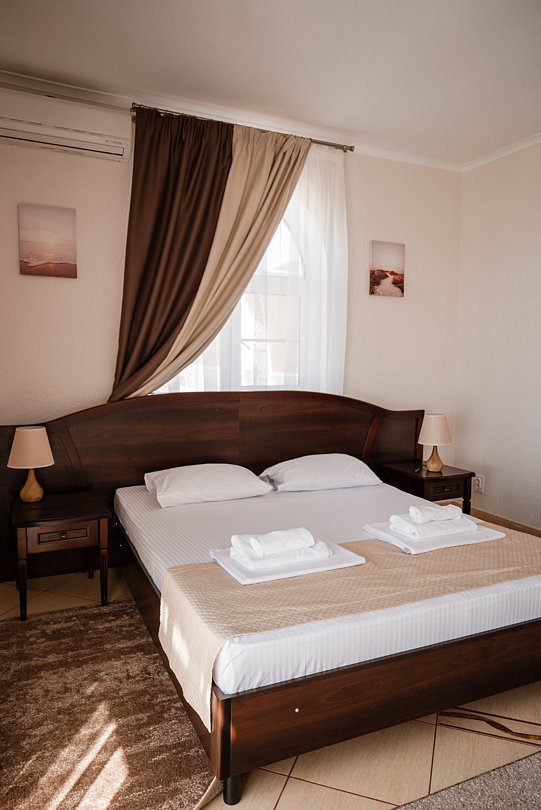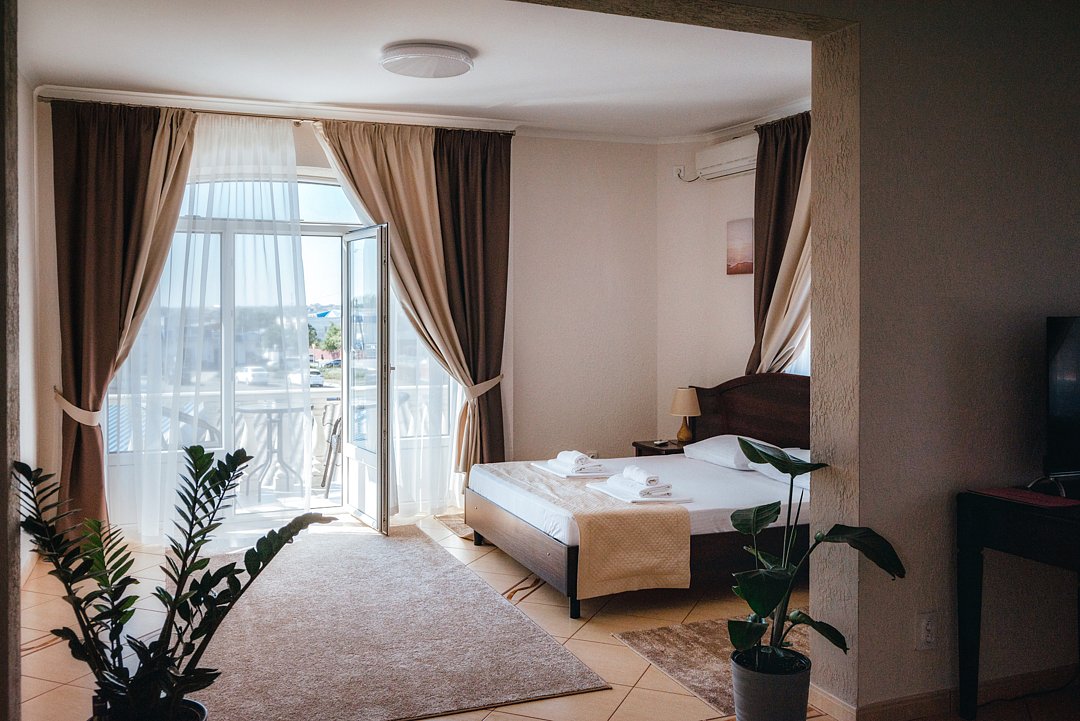 Для проживания гостей предлагается 15 просторных и светлых номеров различных категорий. В каждом номере имеется Wi-Fi, кондиционер, телевизор, холодильник, душевая комната. Отдыхая в отеле, гости смогут насладиться прогулками по центральной набережной Тамани, посетить археологический музей, парк М.Ю. Лермонтова.