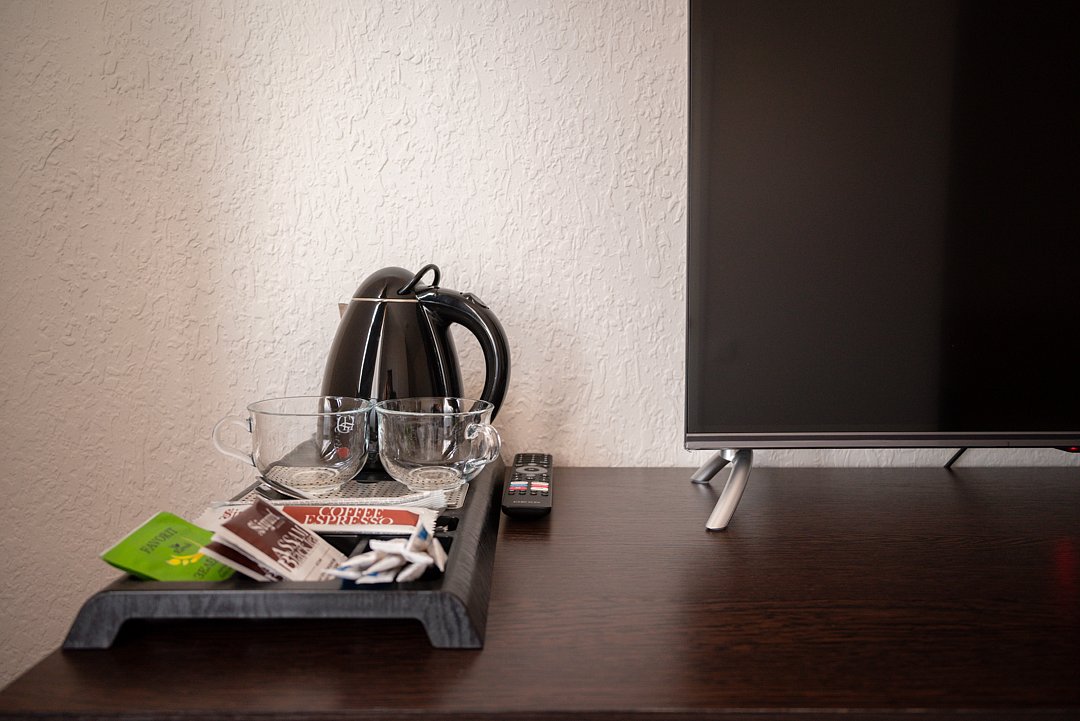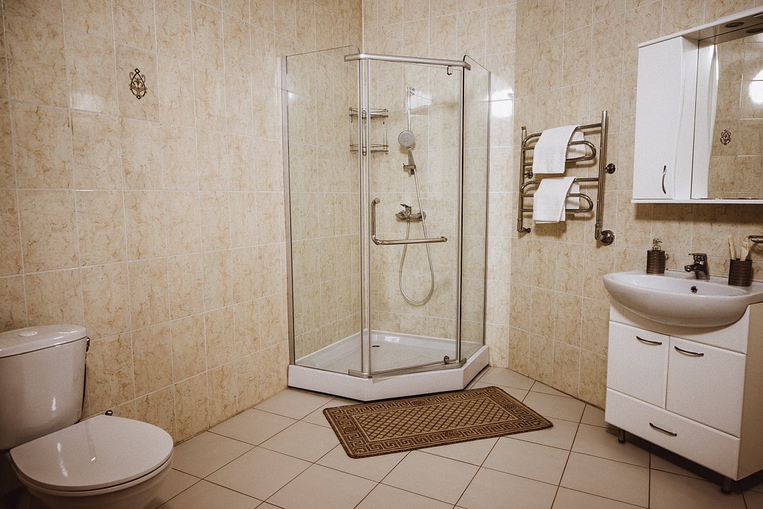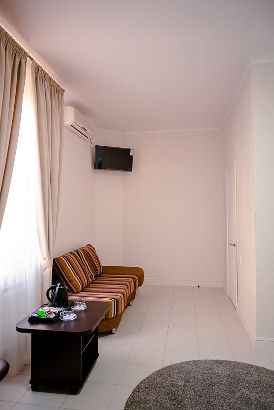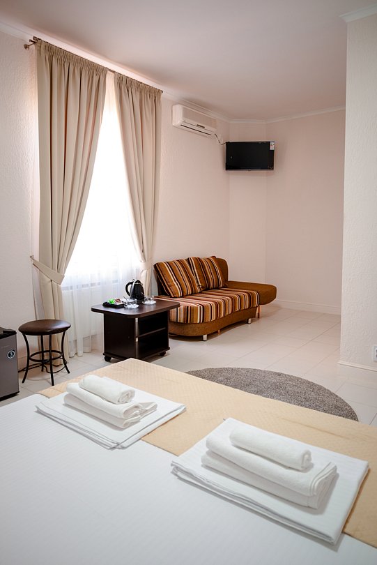 В номере данной категории есть фен, телевизор, холодильник, сплит система, раздельные душ и сан. узел.