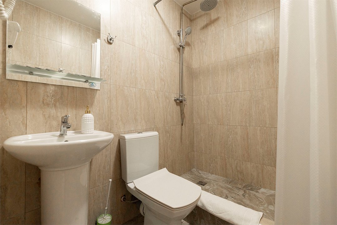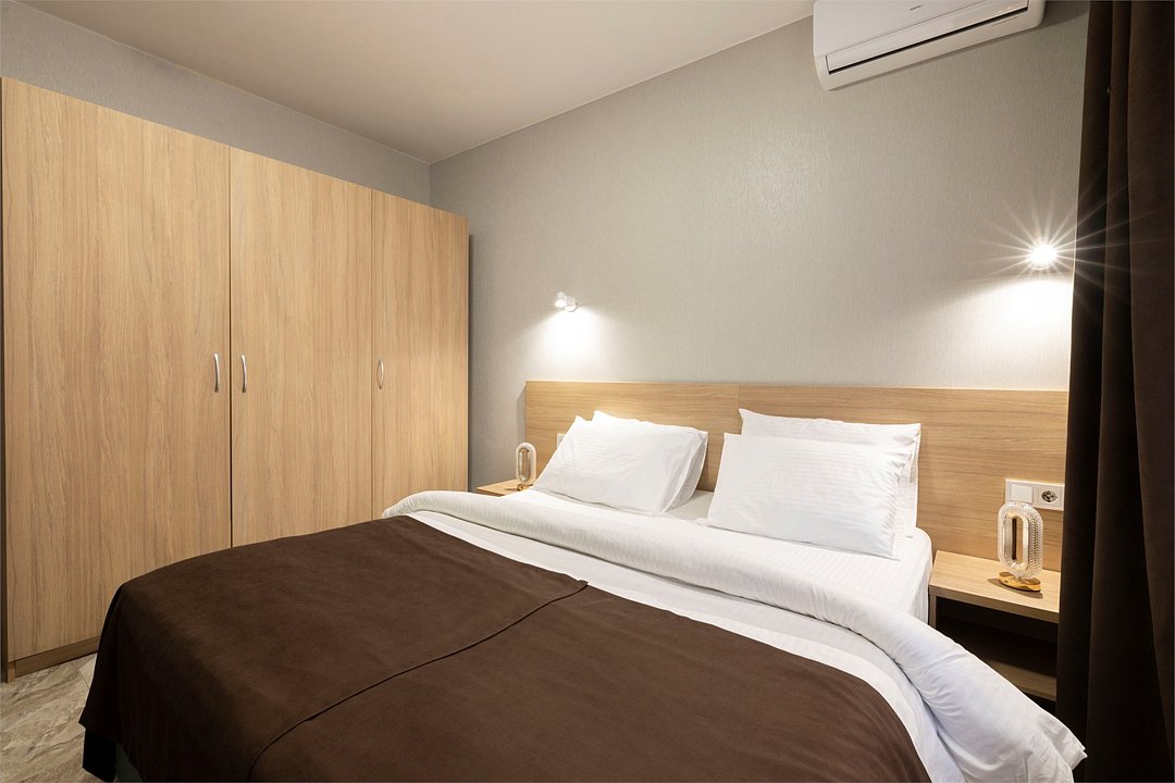 Wi-Fi, холодильник, фен, ванная комната, халаты, банные полотенца, тапочки, балкон, двуспальная кровать, односпальная кровать, тумбы, шкаф для одежды, вешалки, журнальный столик, зеркало, комод, унитаз, раковина, душ, вид на город, три односпальные кровати, стол, туалетные средства, сплит-система, телевизор с плоским экраном, вид на горы, номер для некурящих, мыло, без питомцевВ гостиничном номере