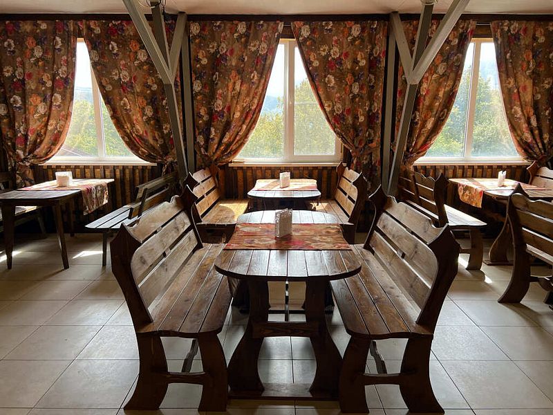 Все чисто, аккуратно,вежливый персонал. Не далеко от Орлиной полки и от центра поселка. Шикарная смотровая на 2 этаже. Классная баня.