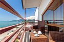 телевизор, кабельное телевидение, Wi-Fi, телефон, кондиционер, светильник, фен, ванна или душевая кабина, санузел, халаты, банные полотенца, пляжные полотенца, тапочки, балкон, двуспальная кровать, гладильная доска, диван, шкаф для одежды, вешалки, зеркало, две комнаты, набор посуды, обслуживание номеров, сейф, унитаз, мягкая мебель, вид на море, кулер на этаже, вид во двор, две ванные комнаты, тумба, туалетные средства, туалет, сплит-система, панорамные окна, диван-кровать, телевизор с плоским экраном, мини-холодильник, неограниченное посещение СПАВ номере