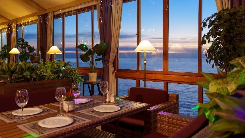 Читать полностьюПанорамный ресторан на море, из окон которого открывается потрясающий вид на бескрайние морские просторы, а слух ласкает шум волн.