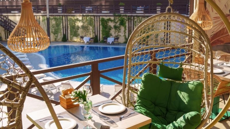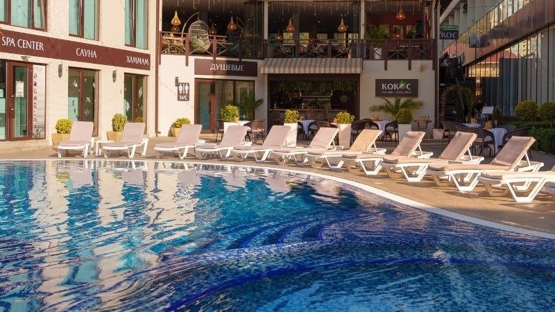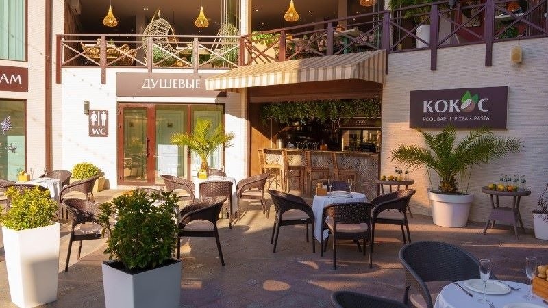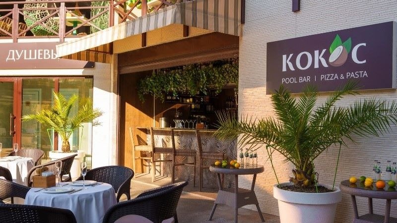 Бар «Кокос» — летний бар у открытого бассейна, предоставляющий гостям возможность утолить жажду и перекусить, не переставая купаться.