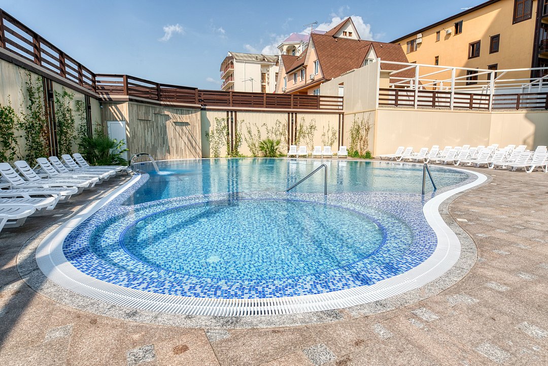 Тип бассейна: открытый бассейнВода в бассейне: подогреваемый бассейнРядом с бассейном: шезлонги, бар у бассейнаТемпература в бассейне: 26 °CРазмеры: 18 x 22 мВремя работы: от 8:00 до 20:00Глубина (диапазон): от 140 до 160 смПериод работы: круглогодичноВ бассейне есть специальная детская зона для маленьких гостей. Глубина детской зоны — 60 см.