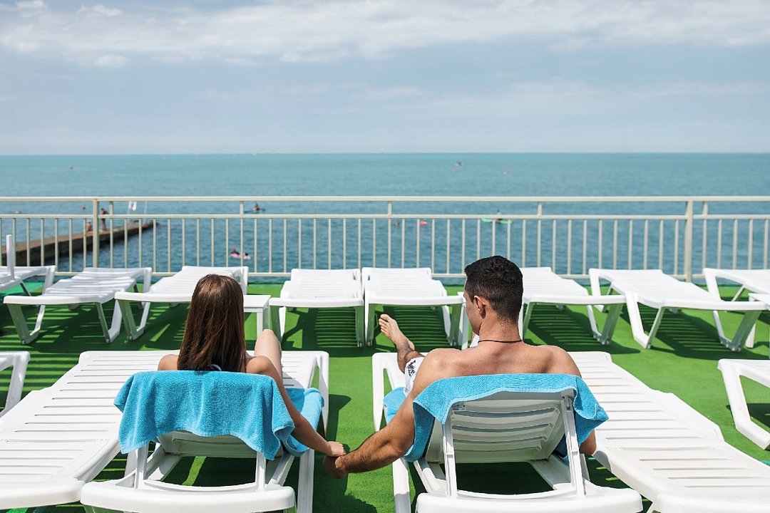 К услугам гостей двухуровневая пляжная зона: