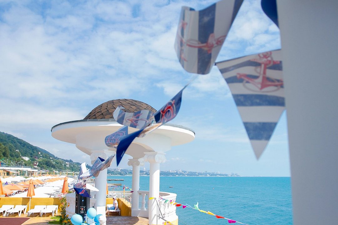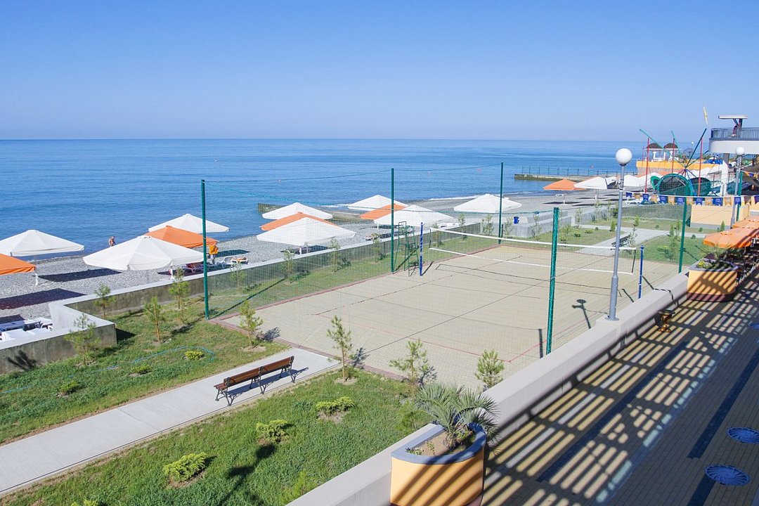 - для гостей, проживающих в номерах высшей категории пользование пляжем повышенной комфортности (в период его работы);