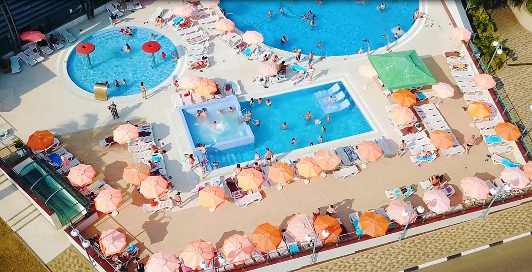- вода морская: на пляже (с горками, аттракционами и фонтанами), для детей до 10 лет
