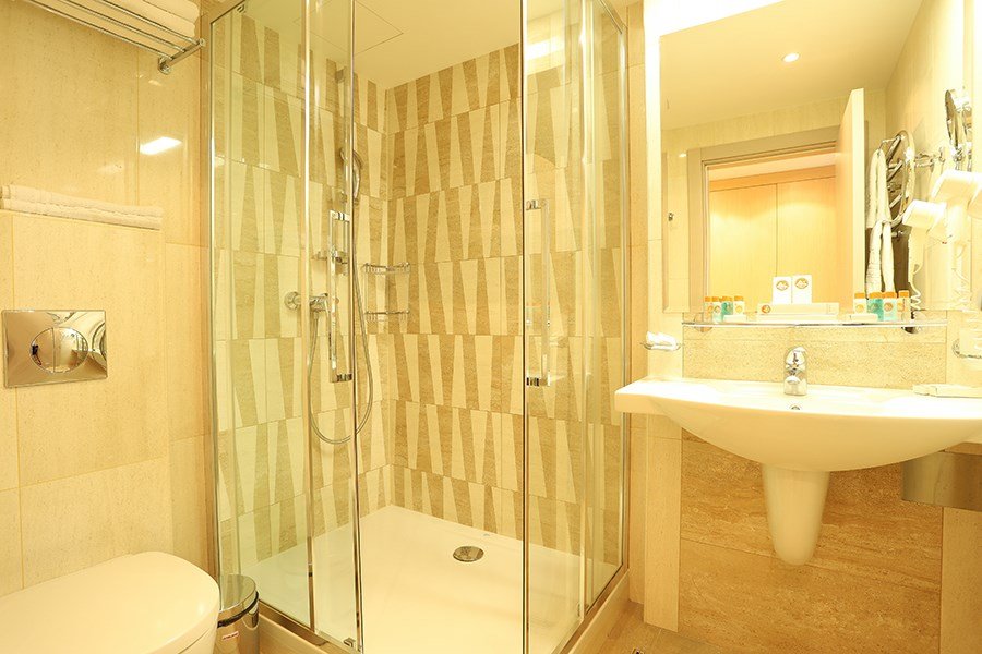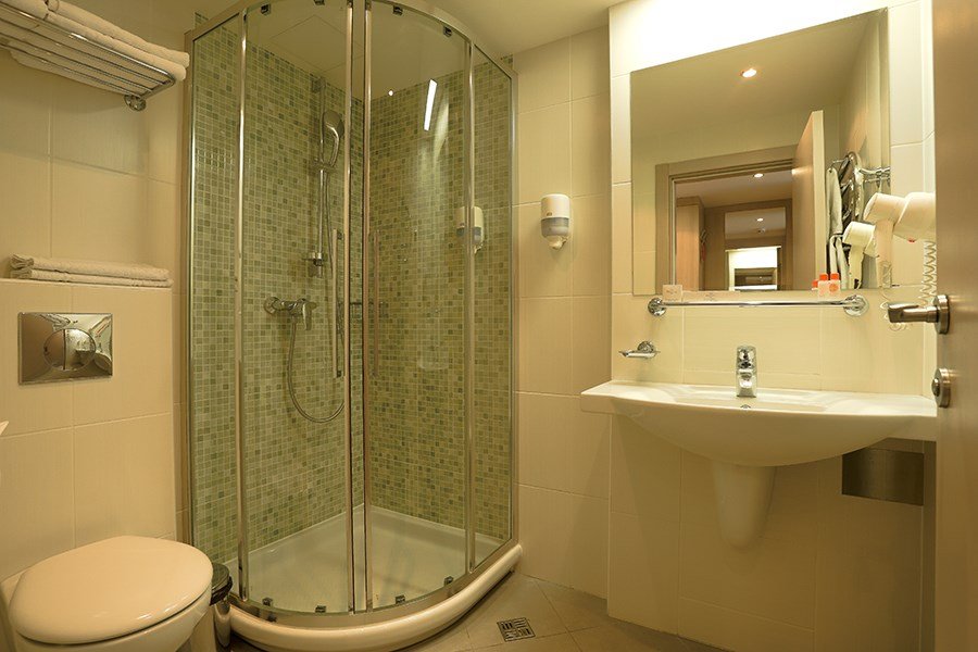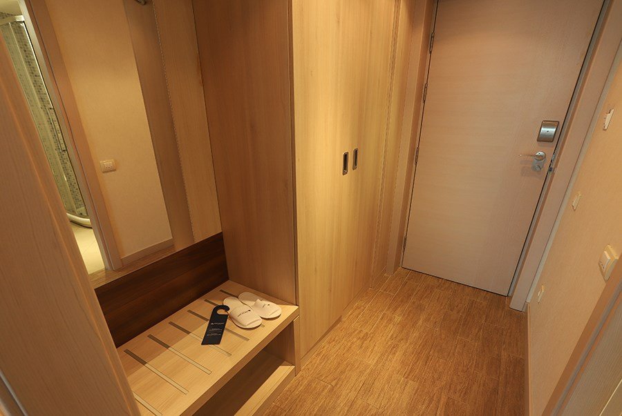 телевизор, кабельное телевидение, телефон, светильник, фен, электронные замки, ванная комната, душевая кабина, банные принадлежности, халаты, банные полотенца, тапочки, сауна, балкон, односпальная кровать, кресла, тумбы, стулья, шкаф для одежды, вешалки, письменный стол, багажная тумба, сейф, чайник, унитаз, раковина, мини-холодильник, фанкойлВ гостиничном номере