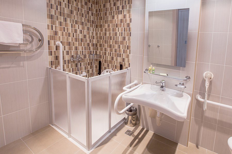 Специально оборудованный номер, площадью 28 кв.м., для комфортного размещения гостей с ограниченными физическими возможностями. В номере предусмотрено размещение на основном (кровать, шириной 90 см) и дополнительном (кресло-кровать, шириной 90 см) местах. Стоимость номера определяется количеством человек, проживающих на основных и дополнительных местах. Дети до 5 лет принимаются бесплатно без предоставления дополнительного места. Дети в возрасте 12 лет (на день заезда) и старше относятся к категории «Взрослые». При размещении на дополнительном месте взрослого - скидка 20% от стоимости основного места; при размещении ребенка - скидка 50%. Расчетный час 12.00 московского времени. Время заезда 14.00 московского времени. Ранний заезд и поздний выезд осуществляются за дополнительную оплату.Услуги и удобства