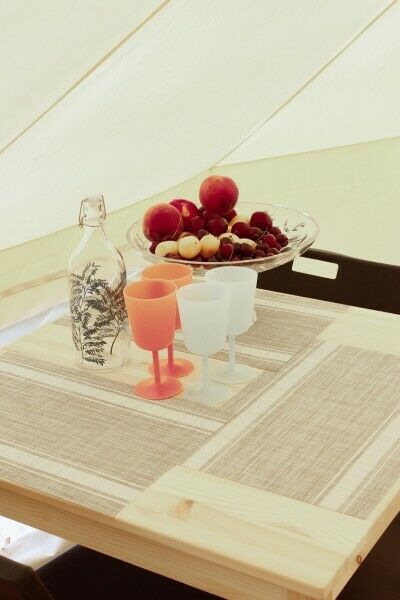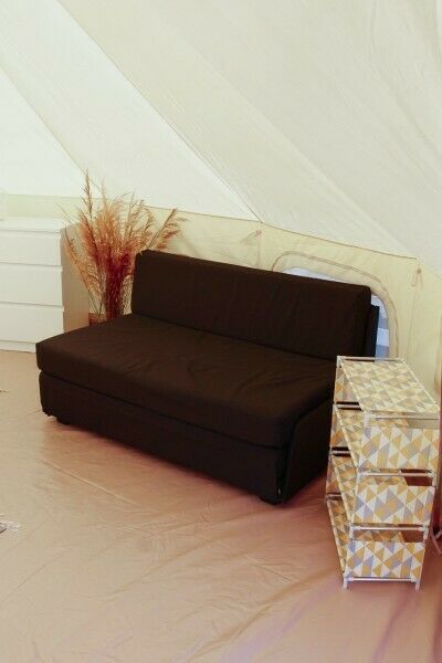 - Продуманная планировка шатров с большими кроватями, вешалками и комодами, а в семейных шатрах с диваном и столиком;