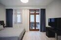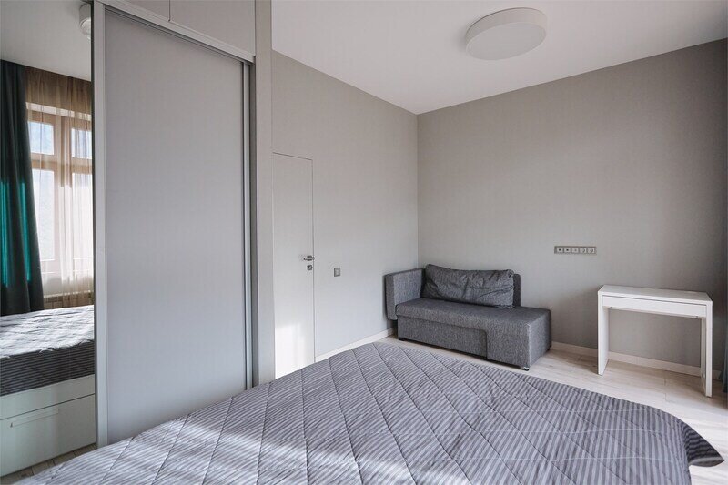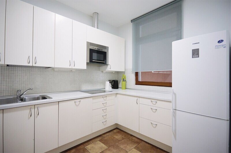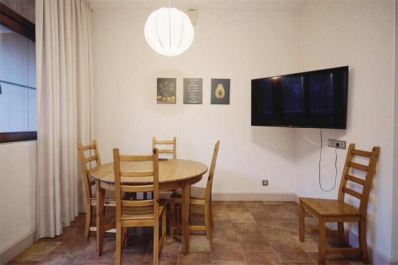 В квартире 2 спальни и кухня-гостиная. 1 балкон. Есть вся необходимая кухонная утварь. Спальные места: двуспальные кровати в каждой спальне, есть возможность установить дополнительное спальное место.