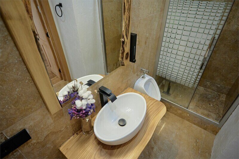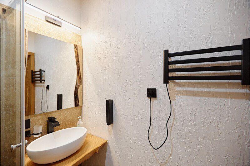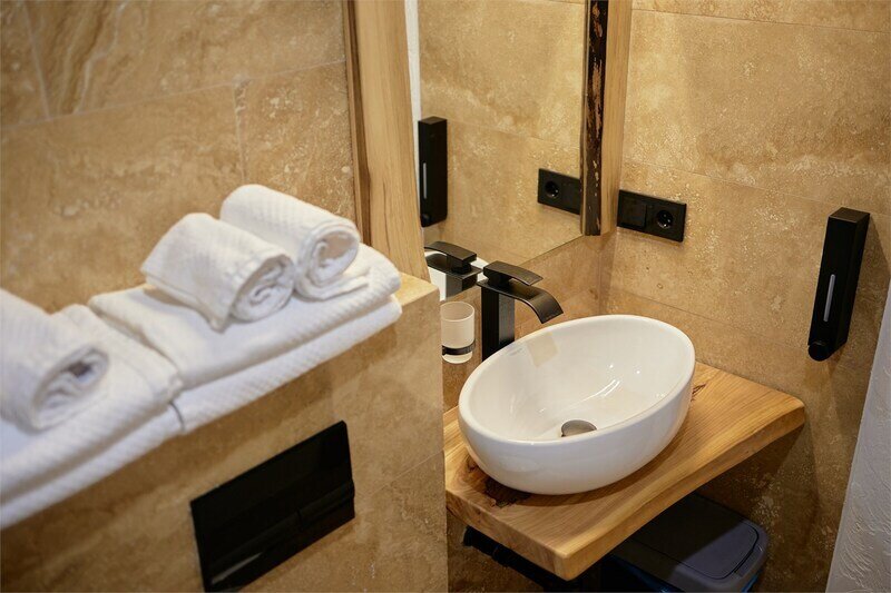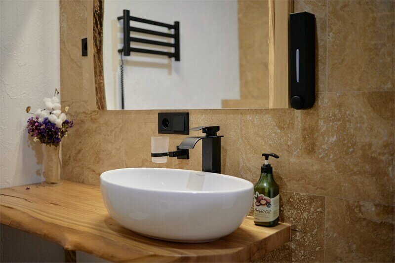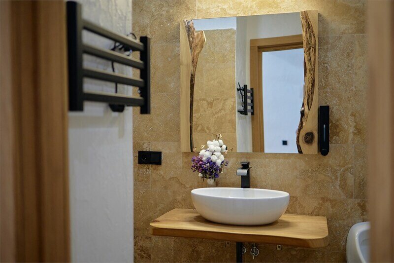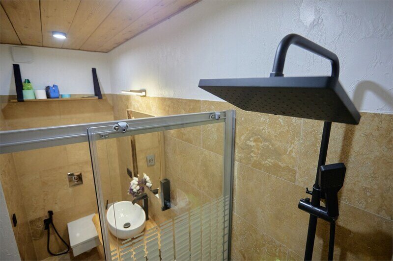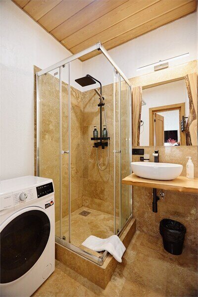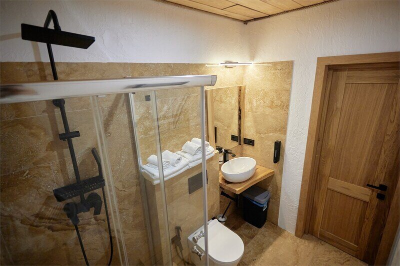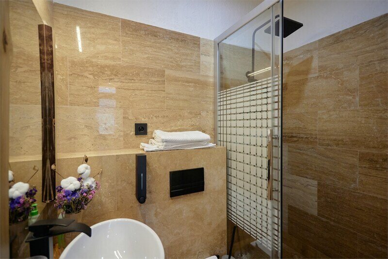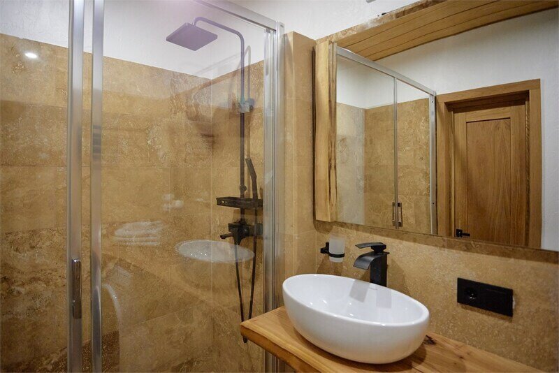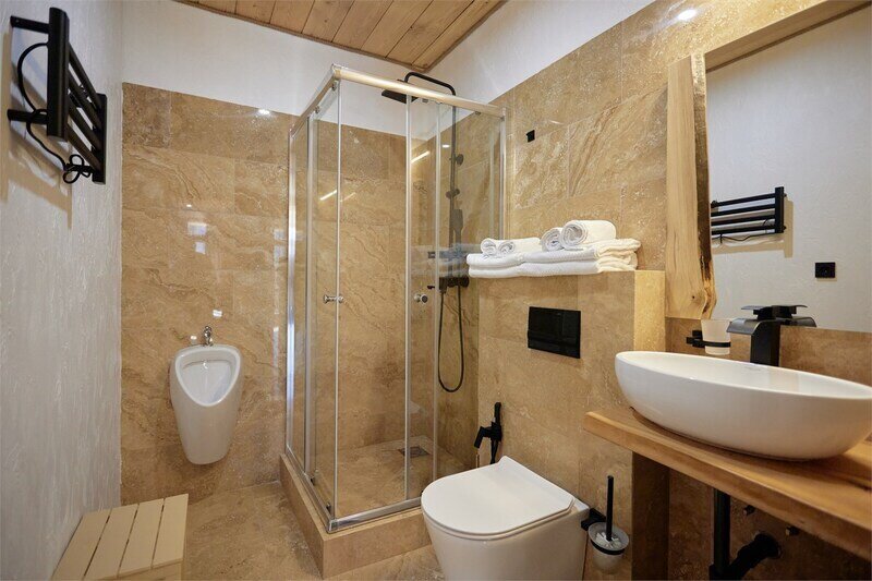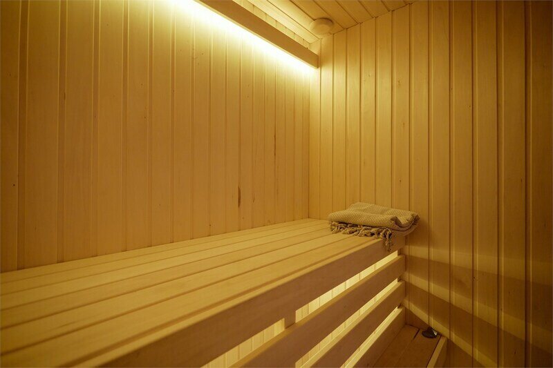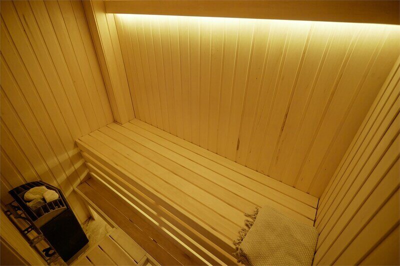 Сауна в апартаментах Дуплекс в стиле шале, расположенных по адресу: Краснодарский край, пгт. Красная Поляна, с. Эстосадок, Берёзовая д. 1А.