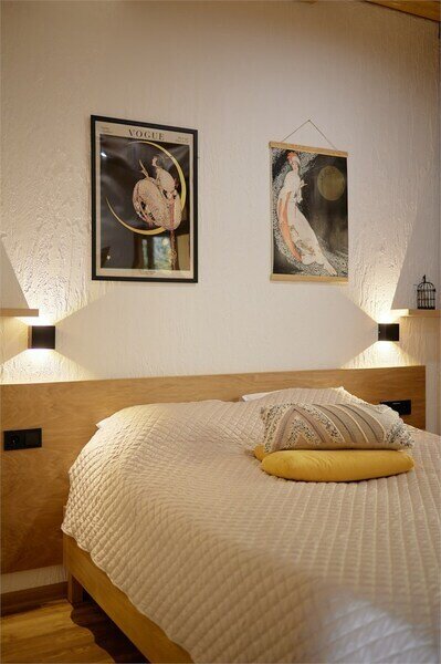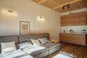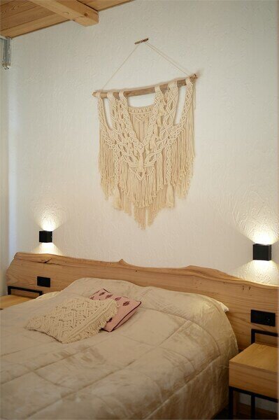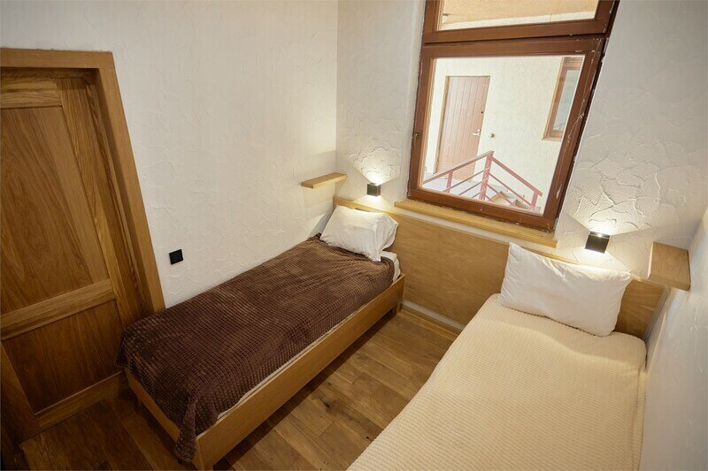 Двухуровневые апартаменты с невероятно красивым видом на горы. На верхнем уровне этаже расположены 2 спальни с одной большой кроватью в каждой, с видом из окон на разные на разные стороны здания, ванная комната с душем. На нижнем этаже находится общее пространство с кухней, обеденной зоной, раскладывающимся диваном, а также ванная комната с душем.