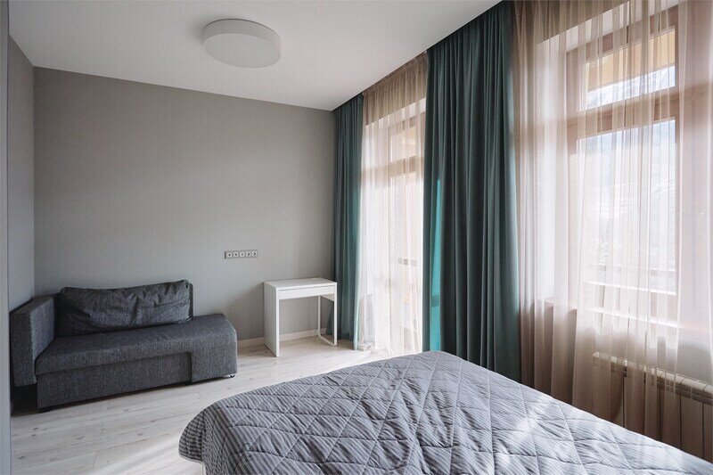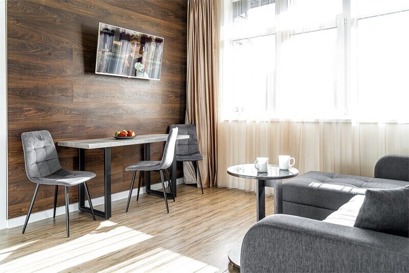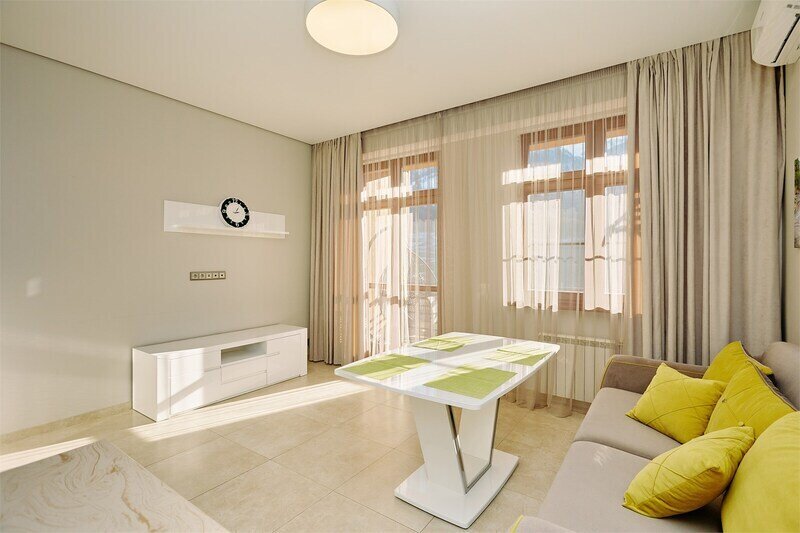 Сервисные апартаменты «Панорама Парк» в Красной Поляне имеют стильный дизайн, кухни с современным оборудованием, ванные комнаты, качественную мебель и удобные кровати и диваны.