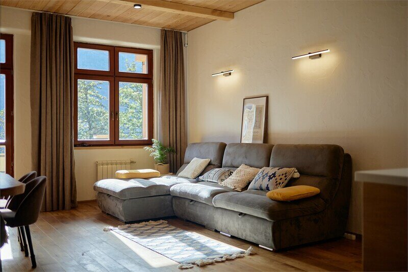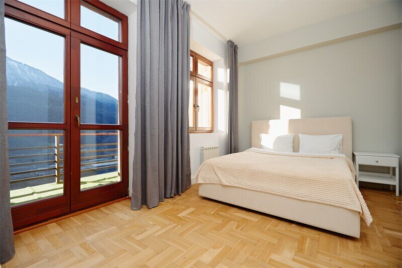 Вы сможете насладиться отдыхом в уютных современных квартирах, всего в нескольких шагах от леса и туристических маршрутов или выбрать двухуровневые апартаменты с панорамными окнами и лоджиями, с которых открывается завораживающий вид на горы и окружающую природу.