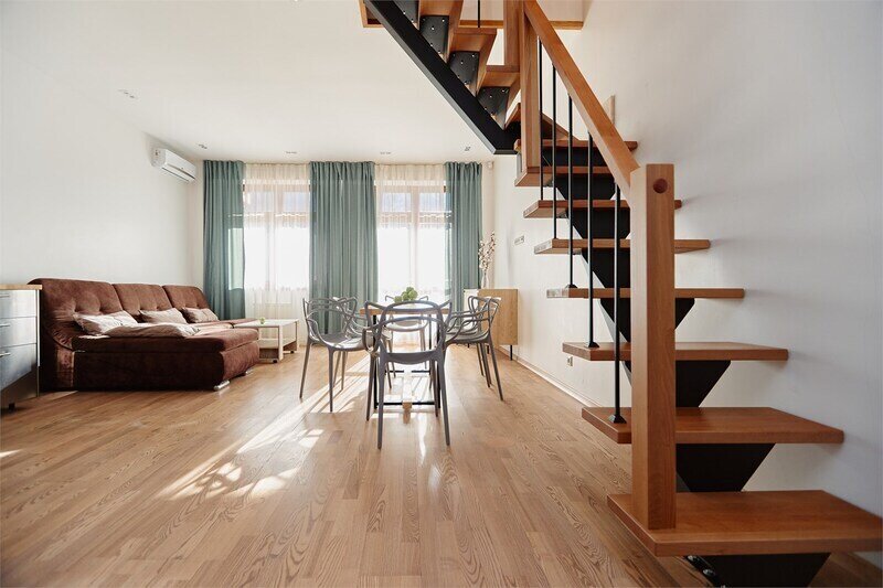 Каждая квартира оборудована спальнями, ванными комнатами на верхнем уровне и просторной кухней на первом этаже.