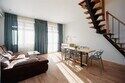Двухуровненные апартаменты в жилом комплексе среди тишины и красоты гор Кавказа. Комфортно разместятся до 8 человек. 2 отдельные спальни в большой кроватью и диваном-кроватью в каждой расположены на верхнем уровне. Прекрасно оборудованная кухня и гостиная с угловым диваном на нижнем этаже.