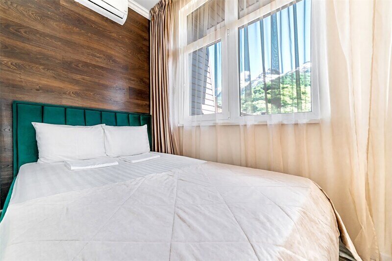 Современные двухэтажные апартаменты, состоящие из двух спален на верхнем уровне, кухни-гостиной со встроенной бытовой техникой на нижнем уровне. На каждом этаже своя туалетная комната, оборудованная душами, двух туалетов ( на первом и втором этажах). В квартире есть три видовые лоджий. В апартаментах есть все необходимое для беззаботного отдыха. На цокольном этаже имеется паркинг. Данный жилой комплекс расположен в заповедной зоне Сочинского Национального Парка.