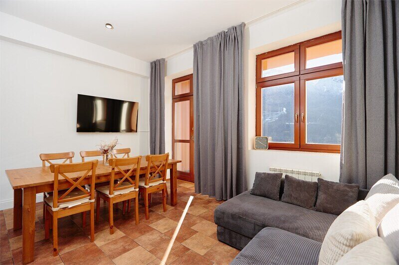 Семейный отдыхДостоинстваМы были в полном восторге от этих шикарных апартаментов с потрясающим видом на горы! Отдых в тишине и комфорте – это именно то, что нам было нужно.