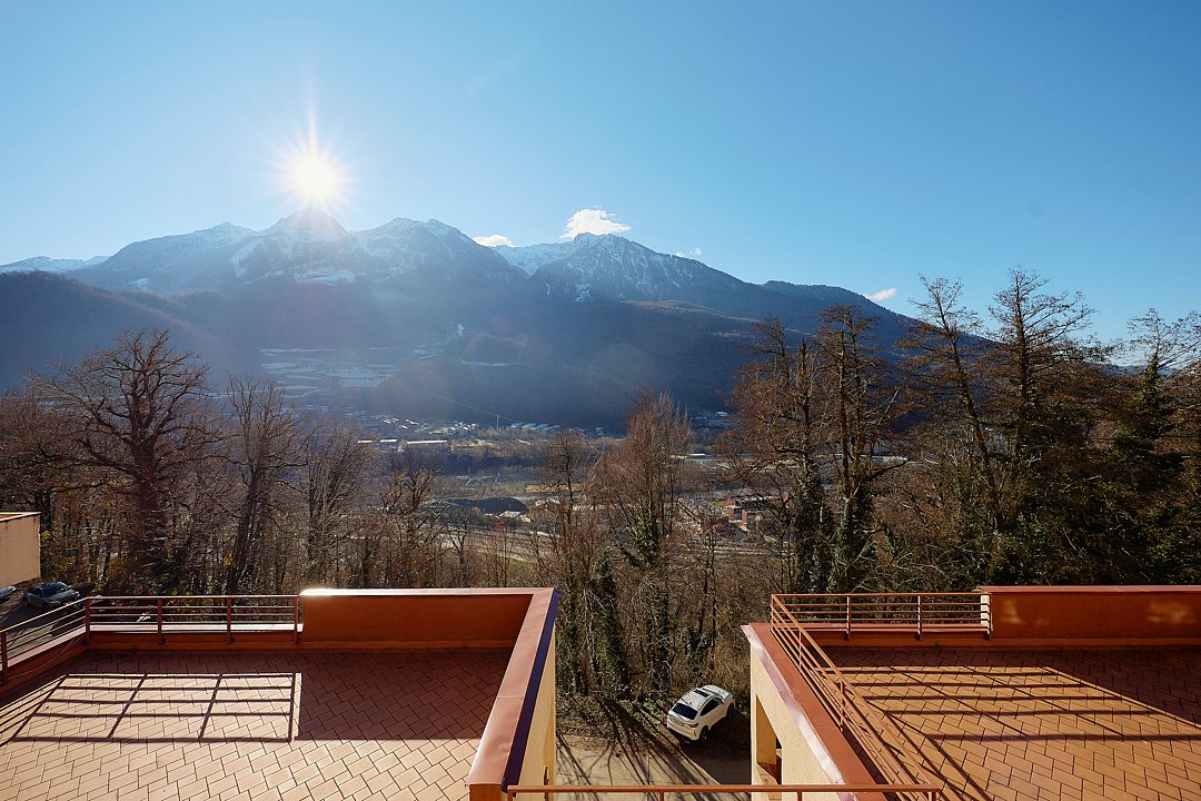 Отличительной особенностью расположения дома на ул. Берёзовая 1а является возможность получить прекрасные фотографии прямо с балкона вашего апартамента или со смотровой площадки на крыше здания. Есть возможность пригласить профессионального фотографа. Наслаждайтесь прекрасными видами на горы с разных ракурсов и круглый год.