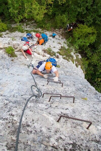 В финале маршрута участников ожидает «полет над пропастью», а точнее тросовая скоростная переправа (троллей) длиной в 300м над ущельем.Продолжительность: 4-5 часов, возраст участия: от 14 лет. До достижения 18 лет строго в сопровождении родителей.       Виа феррата + троллейОписаниеСкальный маршрут виа — феррата протяжённостью более 150 метров находится в непосредственной близости от глэмпинга Панорама. Тех, кто решит наградить себя этим незабываемым приключением, ожидает путь по надёжно закреплённым железным скобам вверх по скале, обеспеченный всем необходимым страховочным снаряжением. Восхождение проходит под контролем опытных инструкторов, что делает маршрут максимально безопасным.